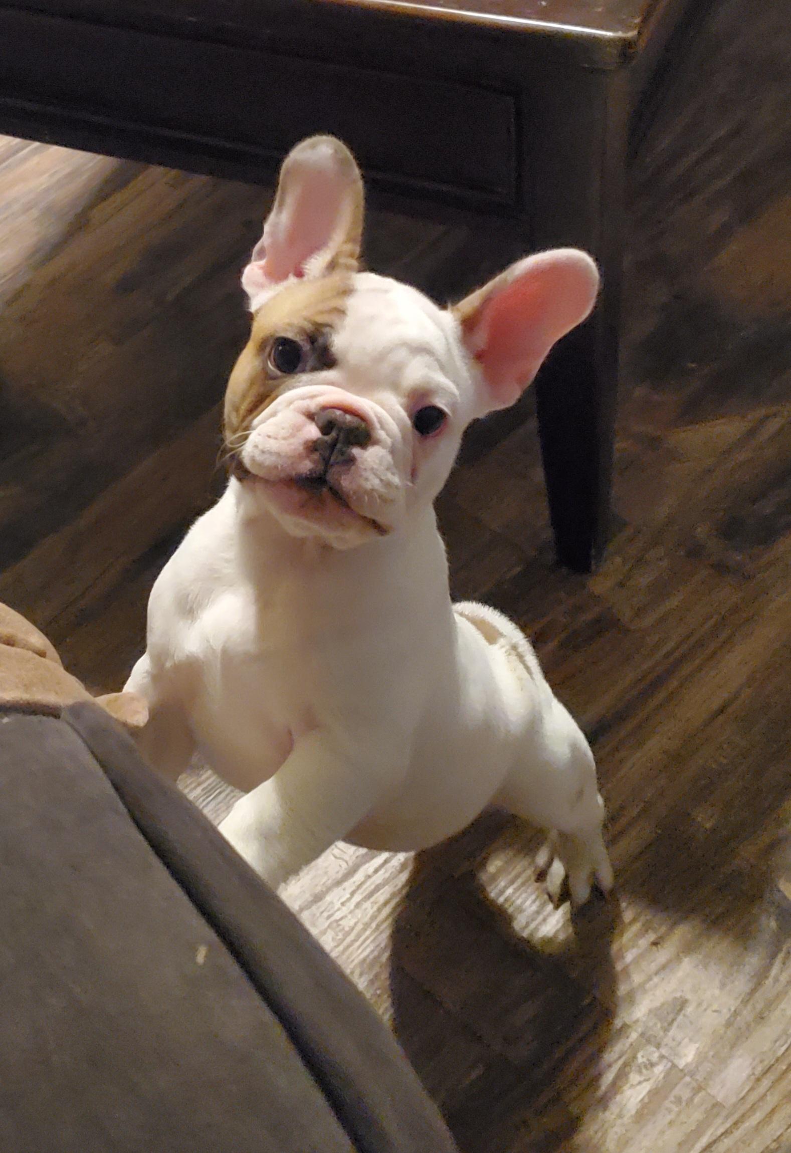 Our French Bulldog puppies are white and fawn. American Bulldog puppies include white and brown and white and black. Colors will vary depending on the parent dogs.