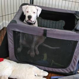 Carter's doing great, he's currently in puppy school. And he's a very quick and smart. We have added to his name. We now call him " "KAOS KARTER " . He a terrific boy and can be a hand full from time c to time.