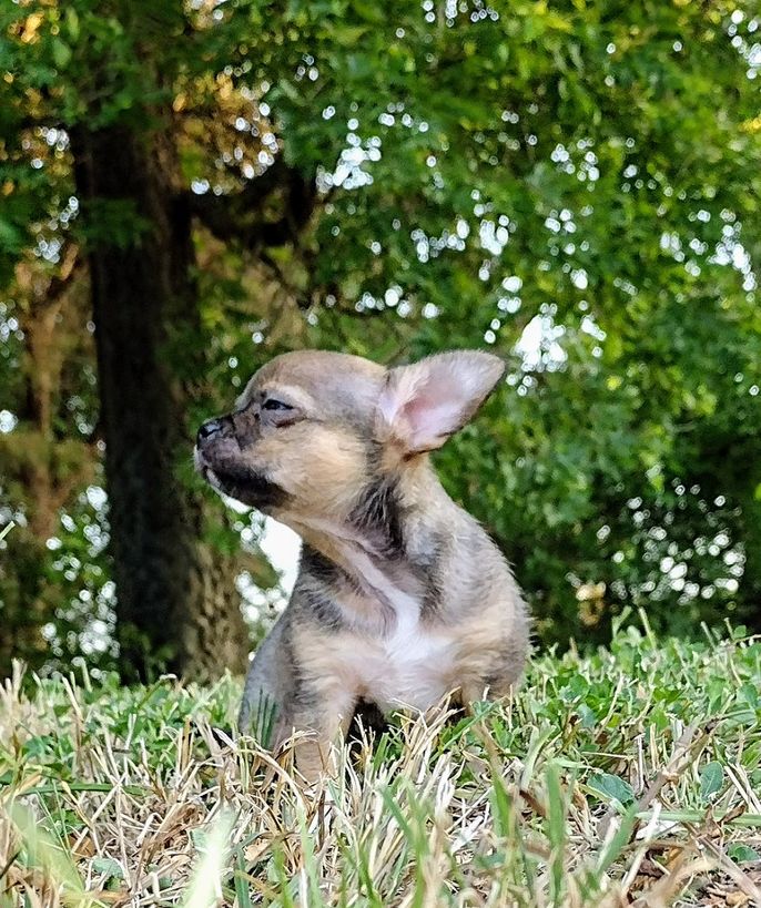Gertie isn't our first Small and Mighty Chihuahua! We brought Franky home in 2022. He is the most perfect little puppy we could have asked for. Having such a great experience with Franky, we knew we wanted to get another puppy from Kara since her puppies are so precious. We brought Gertie home a week ago tomorrow and she and Frankie are almost inseparable. Working with Kara has always been a wonderful experience. We can always feel the love and care Kara gives each of her puppies. We have loved our relationship with Kara and will always go to Small and Mighty for puppies since they are the best!