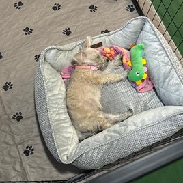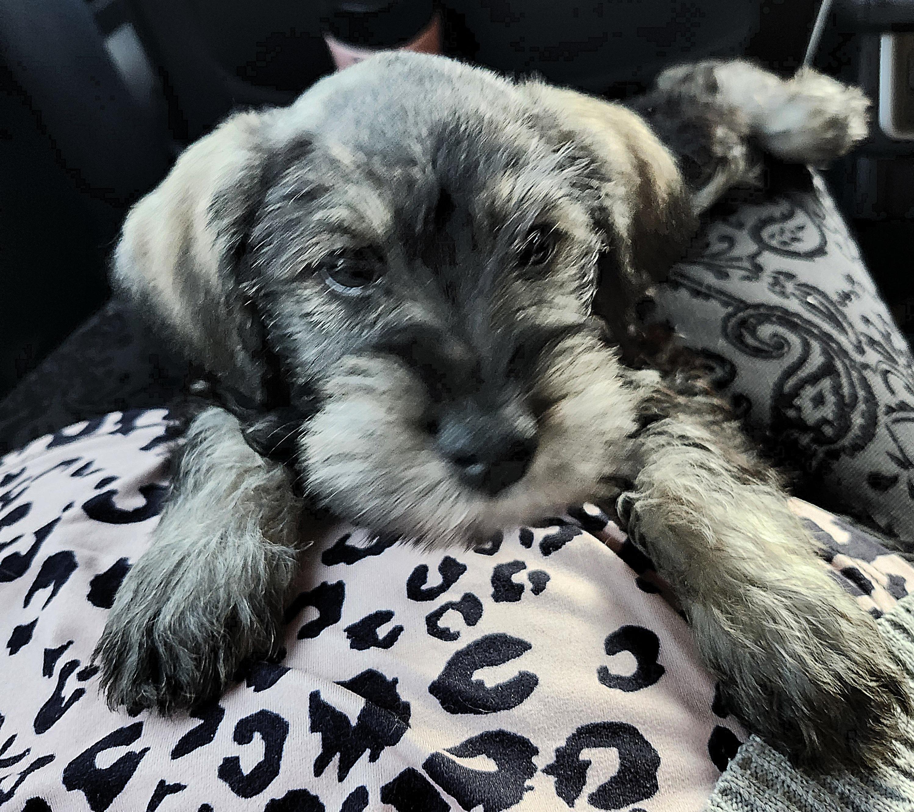 My schnoodles are cared for in my home and are safely monitored in a clean and healthy environment. Lucy has had two (2) proven litters. Both Dam & Sire have been DNA tested and were clear of genetic risks. Also, in this internet age of scammers at every turn, I want any and all prospective owner(s), whom I lovingly call Pawrents, to feel free to call me and/or video chat with me to see their puppy of choice. After your selection, I will stay in contact with you as often as you want via text messages, pictures and/or videos of your puppy prior to his/her delivery. Lastly, I provide my new Pawrents a Question-and-Answer Information Sheet that contains a lot of useful information prior to your puppy arriving to his new forever home.