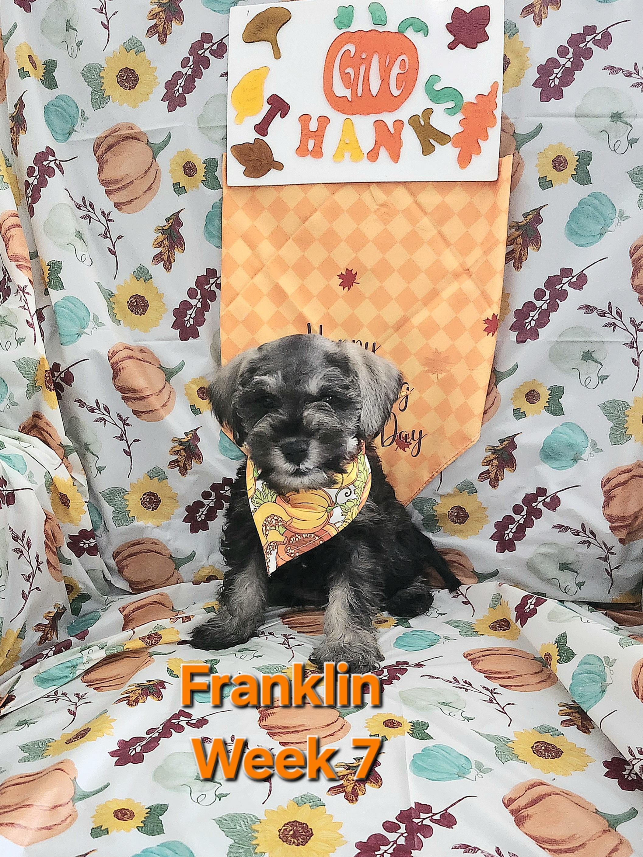 Franklin is a delight. He has Personality, is playful, lovey, smart, healthy, snuggly, and quick to learn. He is teaching our rescue dog Darling to be a dog. He is learning to come and he loves to crawl into your lap and chew on his bully stick. We are very happy with Franklin.