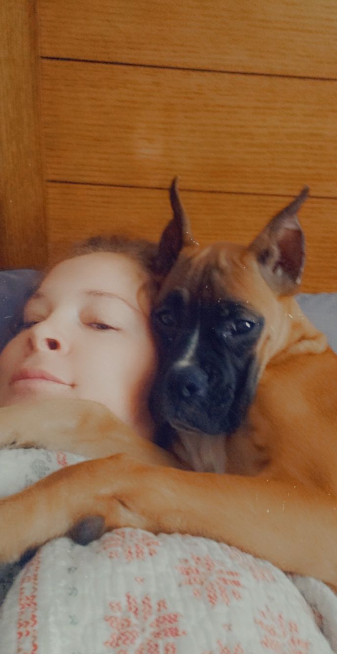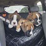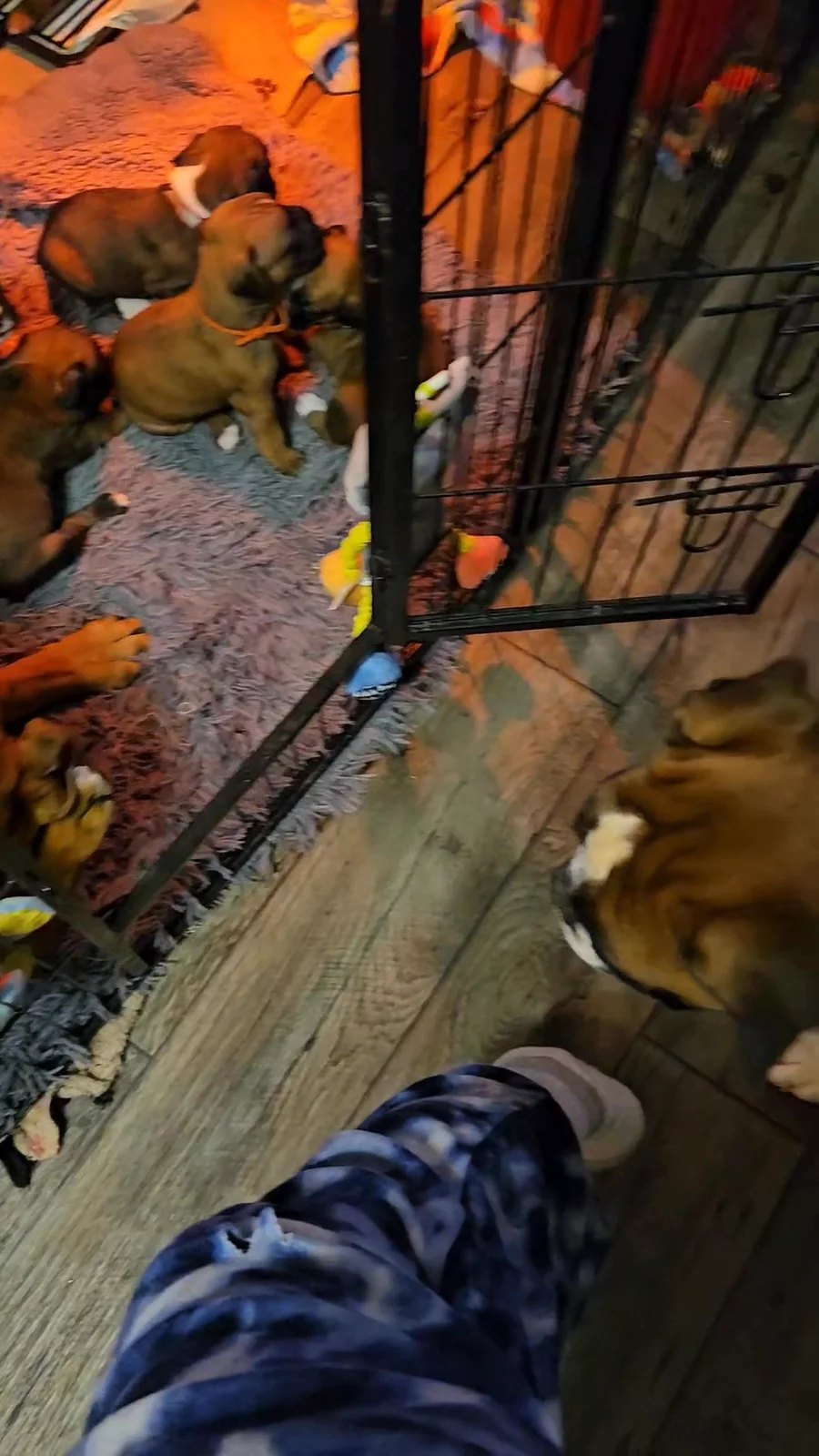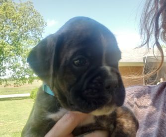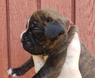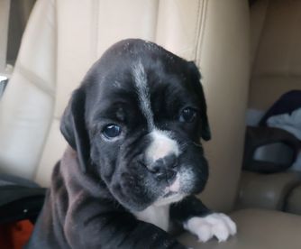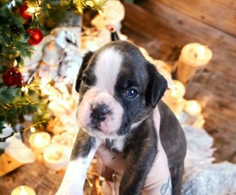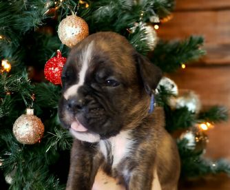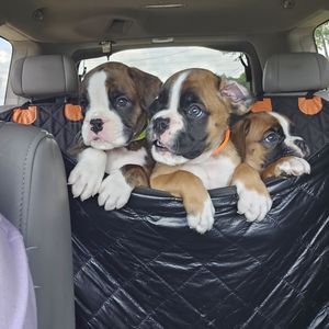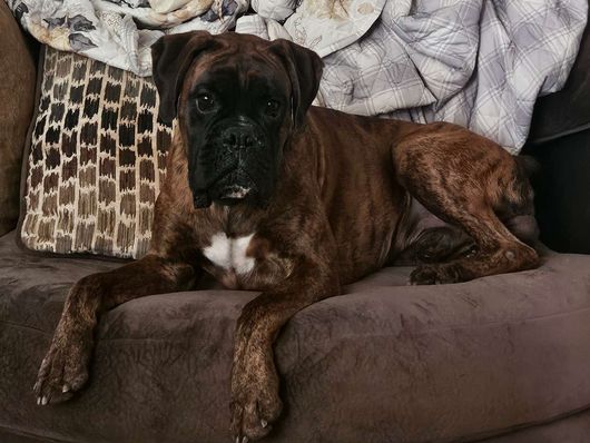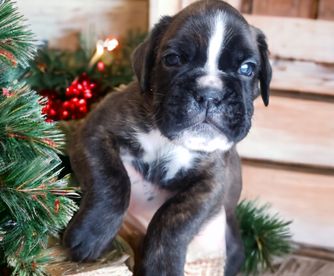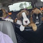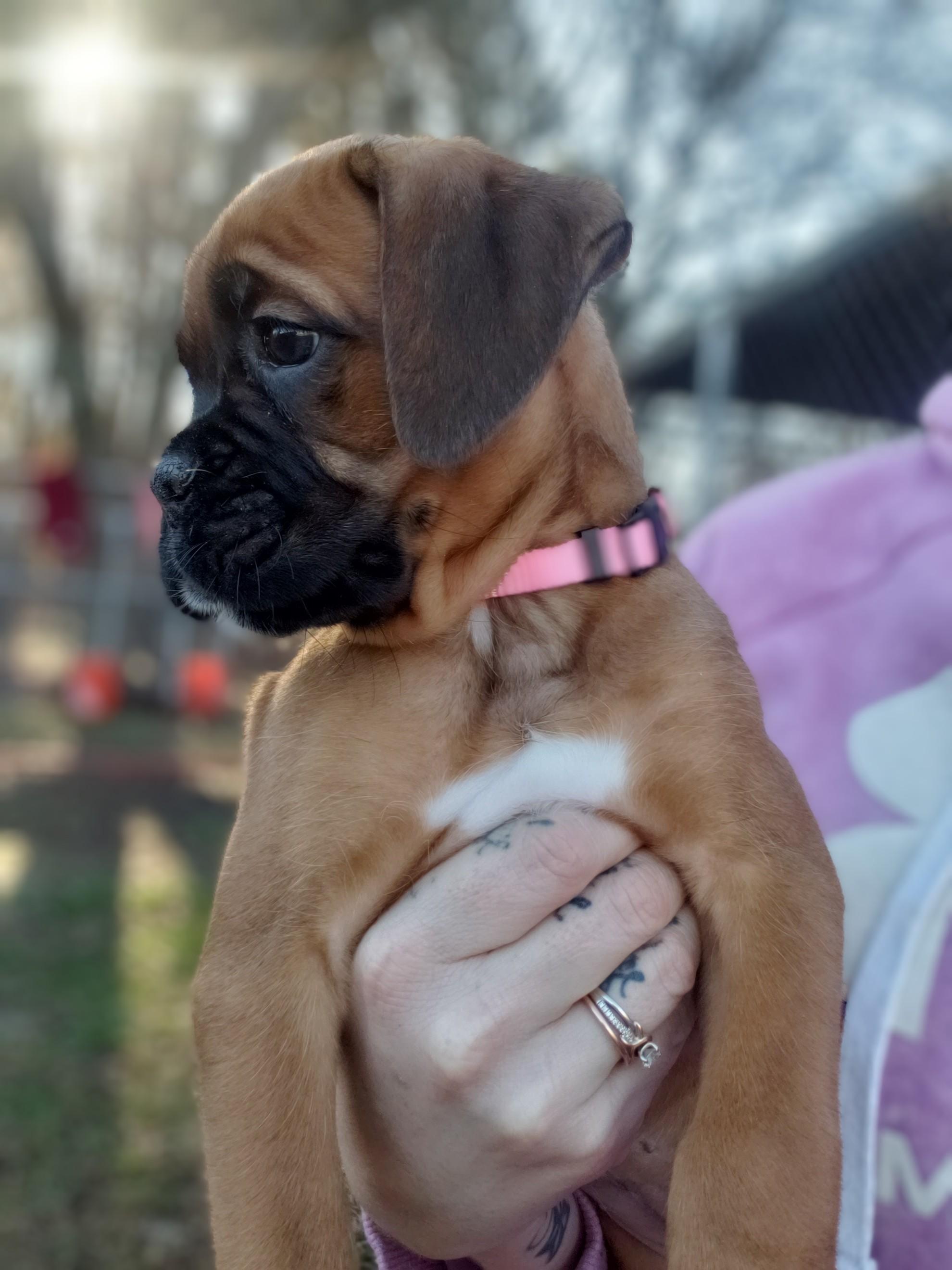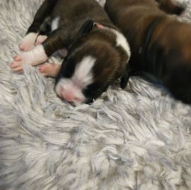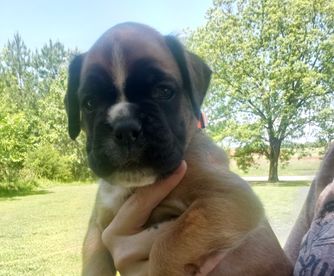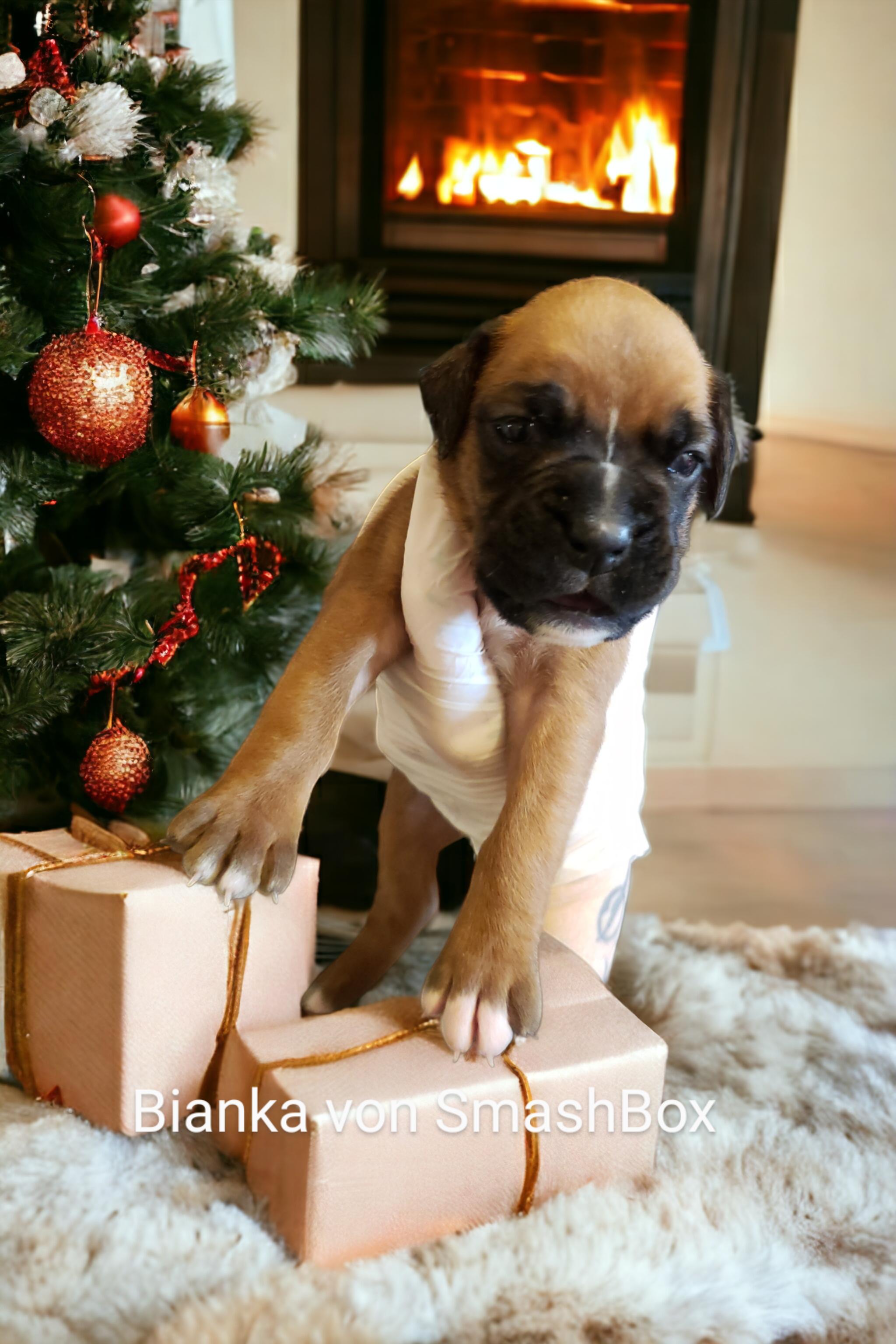 Tarah was so friendly and knowledgeable about the boxer breed! I have owned/raised boxers my whole life so as far as the breed I was already sold, but it’s so important to know the breeder is trust worthy and just a good person. Tarah is very energetic and enthusiastic about the breed. She was sweet and kind to all the puppies and adult dogs in her care. I know that may sound silly but to me it’s important to know the background of the person who made first contact with your puppy. She is organized and clear with instructions on signing the contract, payments, how to register with AKC and upcoming vet visits. Our sweet Ellie-May became a part of our family November 9th and she’s been nothing but laughs. She’s highly intelligent. She picked up potty training with the use of a bell on the door within about 5 days with only a few accidents inside when we didn’t get to the door quick enough. She understands basics commands sit, stay, here, fetch & wait. We make her wait and sit at the food bowl until we say “nose goes” and touch her nose, then she eats. Genetically she’s very healthy vet said she’s going to be a big girl probably around 70 lbs. She’s 6 months and weighs 50lbs. She is absolutely beautiful! We couldn’t be happier about choosing Tarah and VonSmashbox boxers!