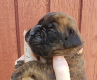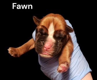 Our puppies include fawn and brindle. Colors will vary depending on the parent dogs.