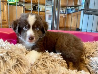 Sherry is a responsible and responsive breeder who kept us updated on our puppy and the litter throughout its gestation and birth. When selecting the puppy, she was mindful of each puppy’s personality and the needs of each family. She was very transparent when she thought a puppy may not be a good fit (for example: a puppy that was needier than average) and directed me to one’s that fit my lifestyle (Puppy X would not be great for hikes but Puppy Y shows more energy.) The Volhard Puppy assessment and recommendation she provided has helped me develop a training plan for my puppy. She has also set up a community so we can connect with other families who have also purchased a puppy from her. We are able to commiserate and ask questions/advice from other owners and it has been a huge lifesaver. (Crate training is hard and the encouragement of others who went through the same experience was really valuable). Sherry very clearly cares about her dogs and I would highly recommend her to anyone looking for an Aussie. I learned so much from her and the community she has set up.