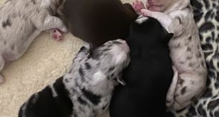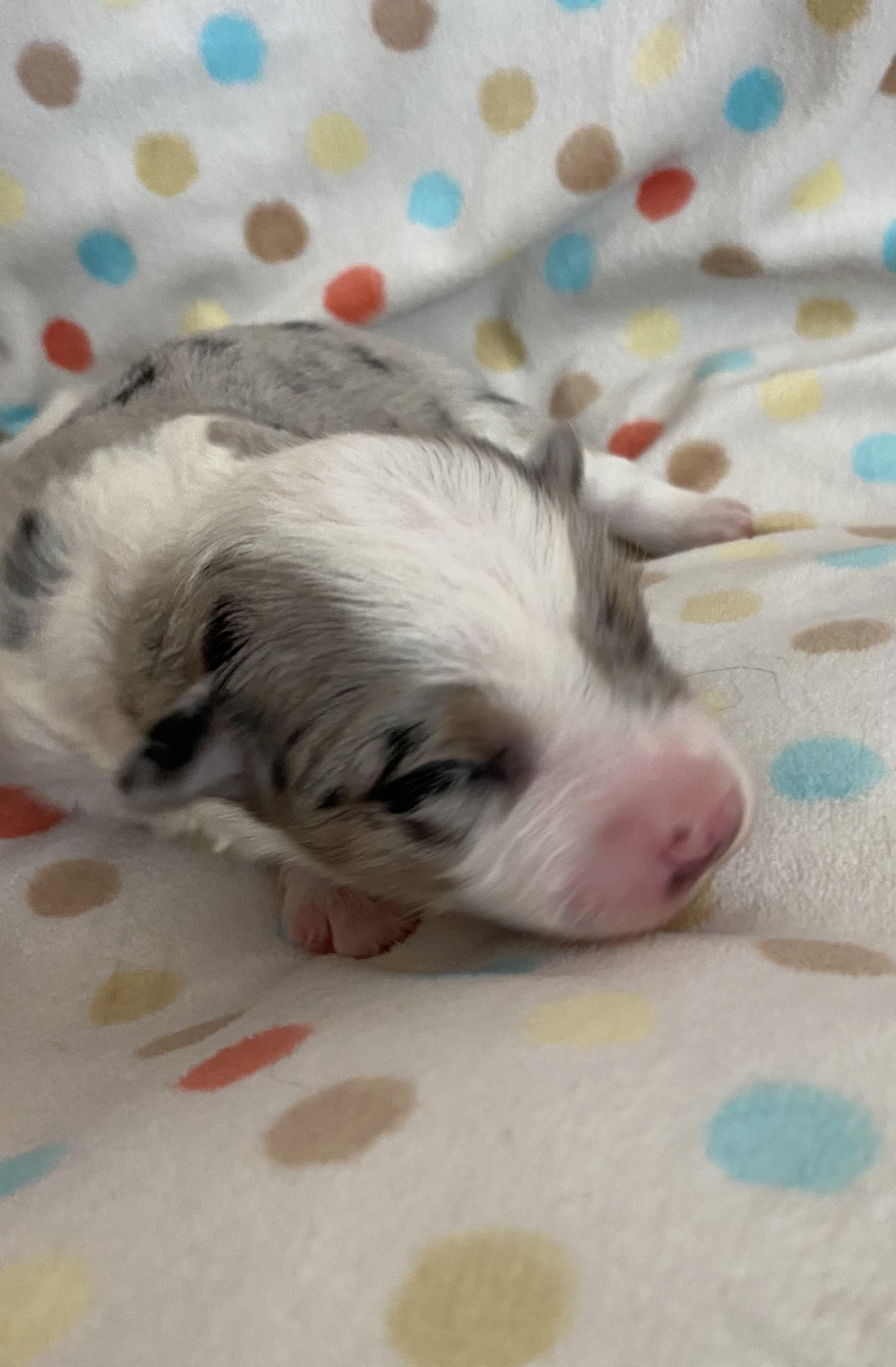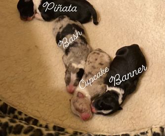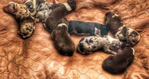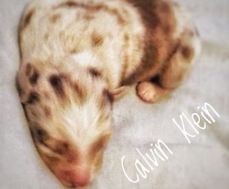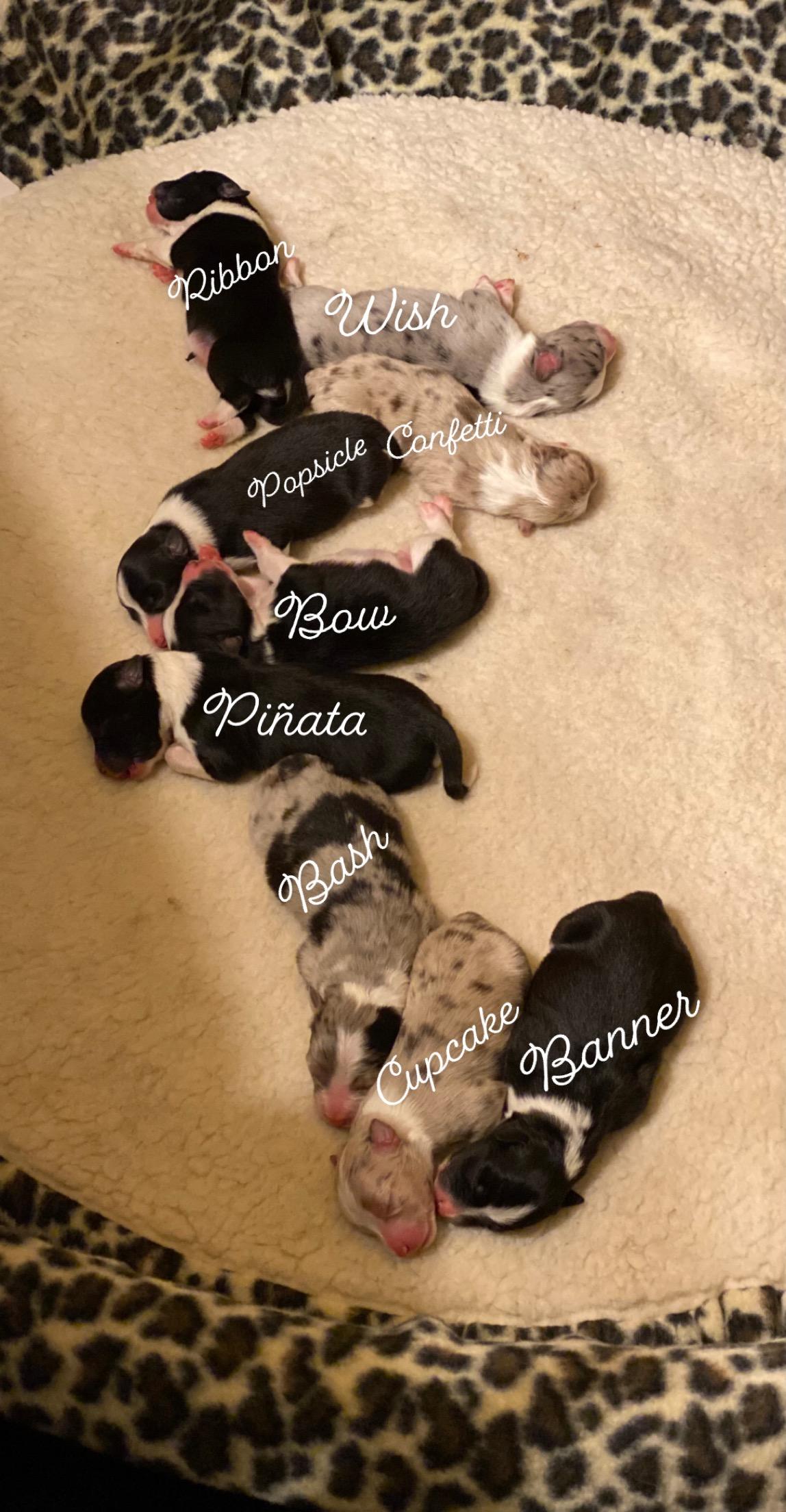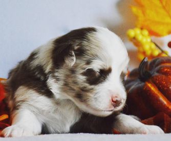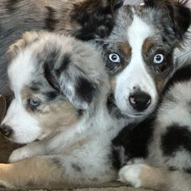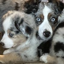 Miniature Australian Shepherd puppies include blue merle, black tri, and red merle. Colors will vary depending on the parent dogs.