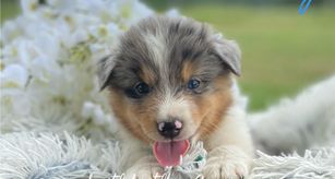 Our puppies include red merle and blue merle. Colors will vary depending on the parent dogs.