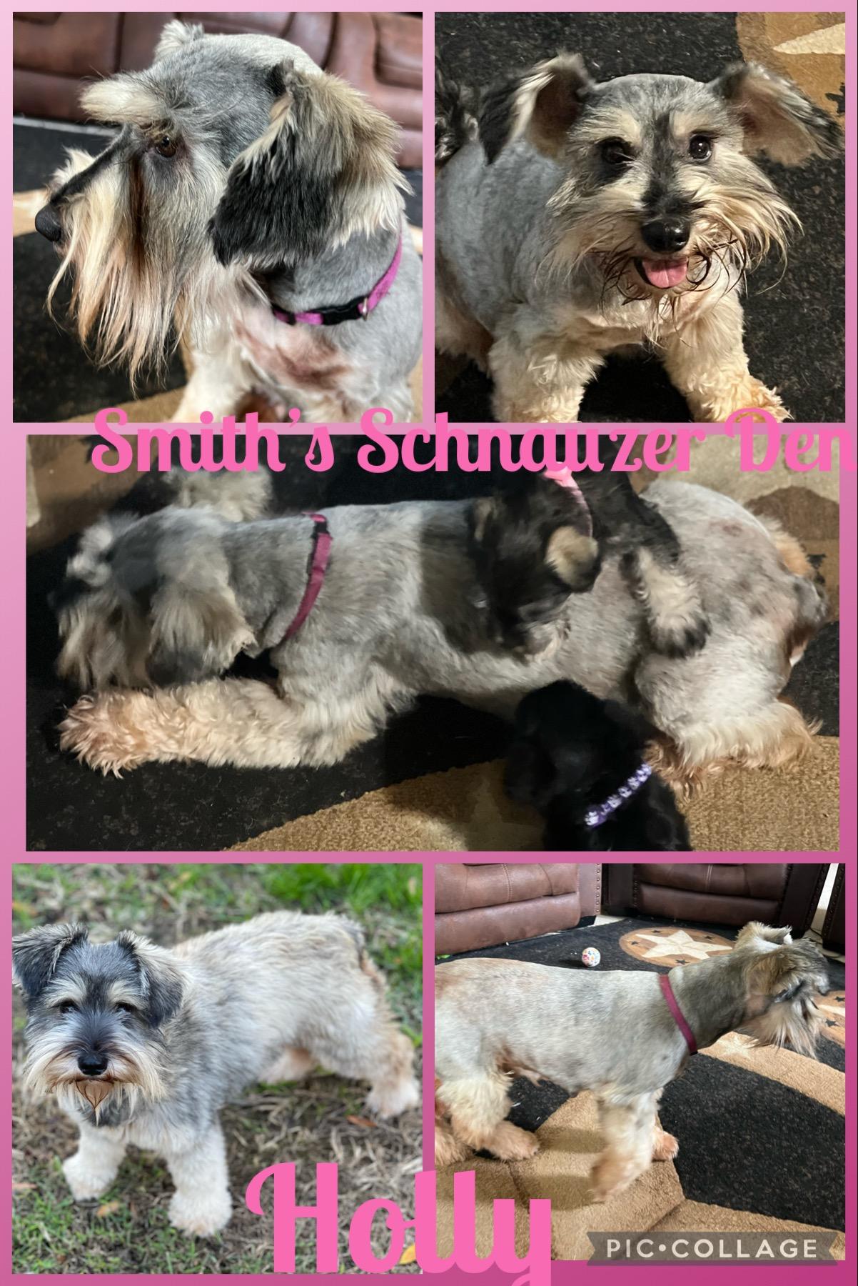 I'm Heather E., the breeder behind Smith’s Schnauzer Den located in Trinity, TX. Each of our dogs has brought so much happiness to us throughout their lives. We want to do our part to produce wonderful, healthy pups that can bring other people joy as well, and we strive to provide each of our puppies with loving homes where they can live happy lives. Our pups are raised in home.