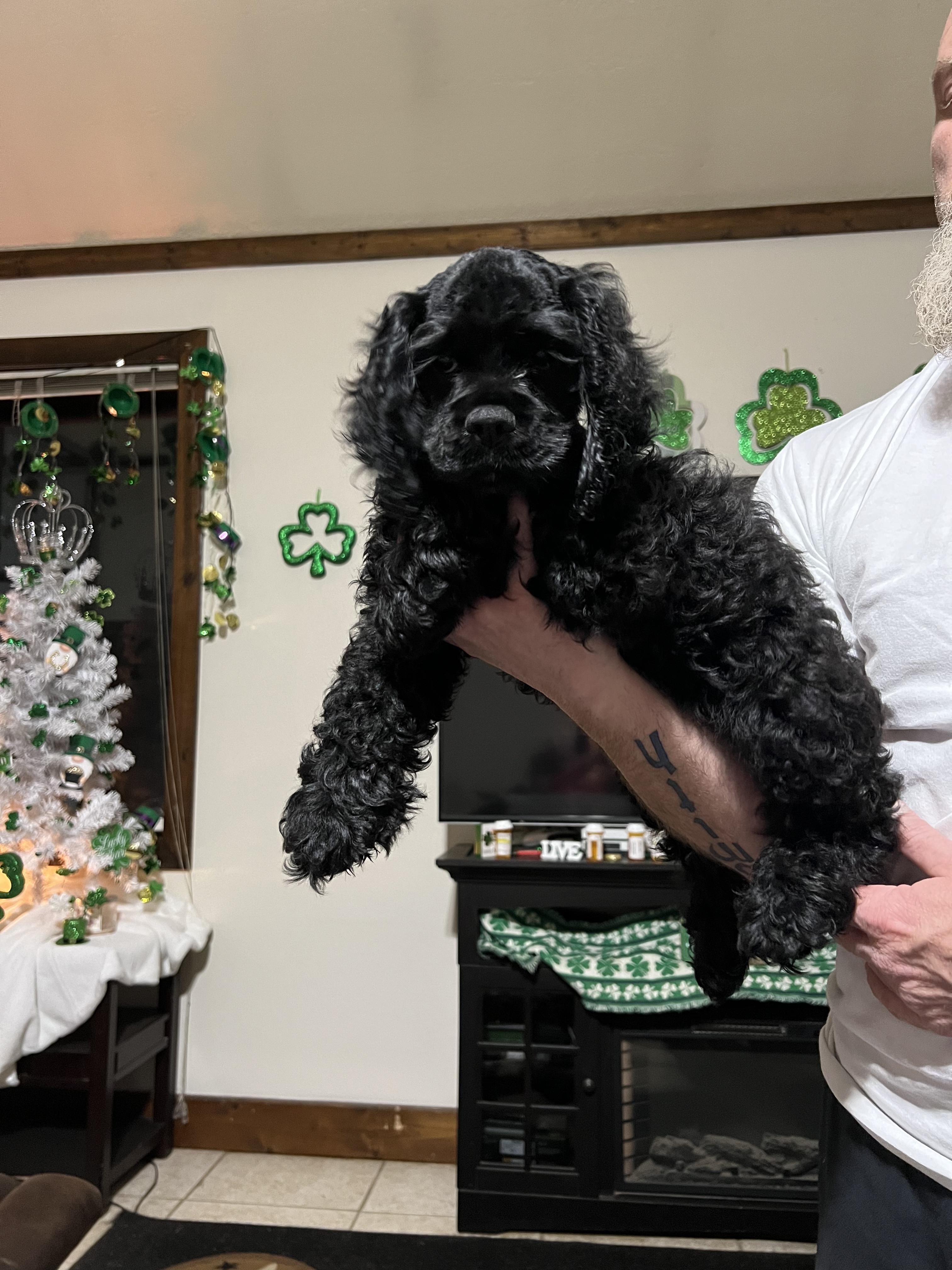 Milo is our black miniature! He throws a beautiful rainbow of colors in babies with great temperaments.