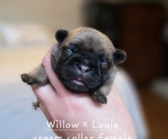 Our puppies include cream and fawn. Colors will vary depending on the parent dogs.