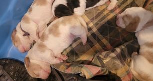 Our puppies include red and white and black red and white. Colors will vary depending on the parent dogs.