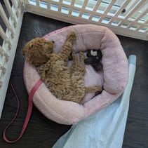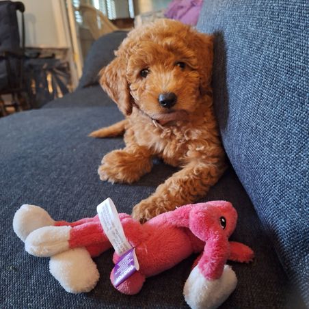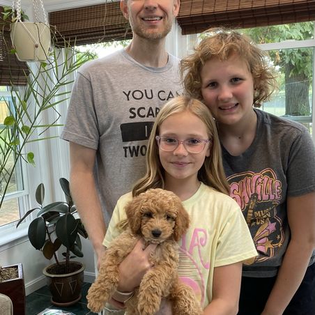 We had a fantastic experience getting our Goldendoodle puppy from Krista. She was incredibly responsive and happy to answer all of my detailed questions, showing true dedication and knowledge. We loved the photo updates and the ability to visit before committing. Our puppy is healthy, happy, and has the sweetest temperament—both playful and calm. She is always sitting! She passed her first vet check with flying colors and is already doing great with house training. We couldn't be happier and have already referred her to our friends. Highly recommend!