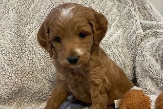 Ginger is a beautiful miniature Golden Doodle! She has a very playful temperament, is friendly to everyone, including other dogs, and considers herself a lap dog.