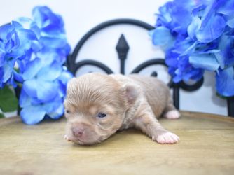 I'm Jessica H., the breeder behind Smokey Mountain Chihuahuas located in Bulls Gap, TN. All of our puppies are bred, raised, and loved indoors to produce happy, healthy pets for those seeking the best family companion! When we got our first dog, we were instantly in love. Since then, we’ve made it our mission to bring happy, healthy puppies into the lives of other families! They come with age appropriate vaccinations, deworming and a clear bill of health from my veterinarians office. WHERE I AM A LICENSED BREEDER IN THE STATE OF TENNESSEE. I DO HAVE TO ADD TENNESSEE STATE TAX OF (9.75%) TO THE PUPPIES TOTAL. PLEASE NOTE*** As of October 4th, 2023 Gooddog has changed their payment platform policy. This means that if you wish to message us or apply for one of our puppies directly through Gooddog, you will be REQUIRED to set up a payment schedule and pay for your puppy electronically through Gooddog's payment system. If you do not wish to pay electronically through Gooddog, please contact us through our linked social media or give us a call at (423) 3two7-88twotwo to reserve your new puppy. Thank you for your understanding and I apologize for any inconvenience.