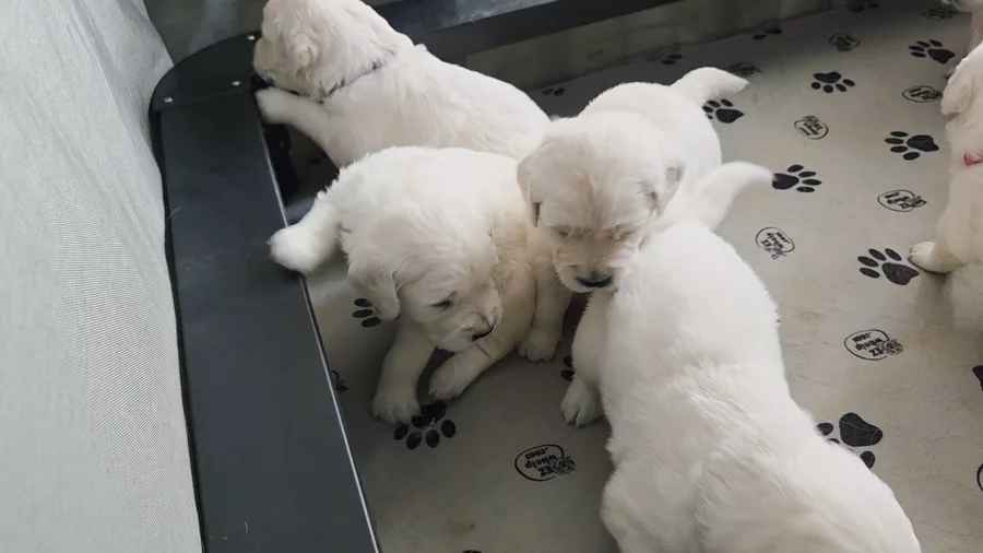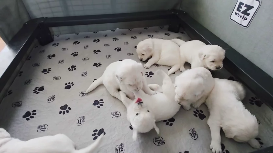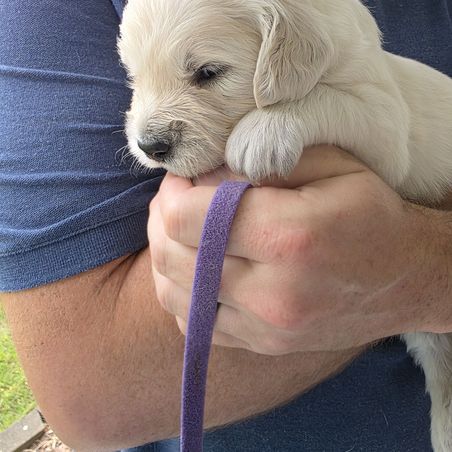 We love our sweet Lily, born Easter 2025. Lauren and Dustin are professional and take care of communicating and their puppies. Lily (pink collar) has adjusted well and was house broken for bowel movements the day we brought her home. She is well-adjusted and I was grateful for the snuggle puppy and blanket with mom and siblings scent. I have recommended them to all who ask when we have Lily out and about!