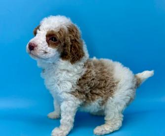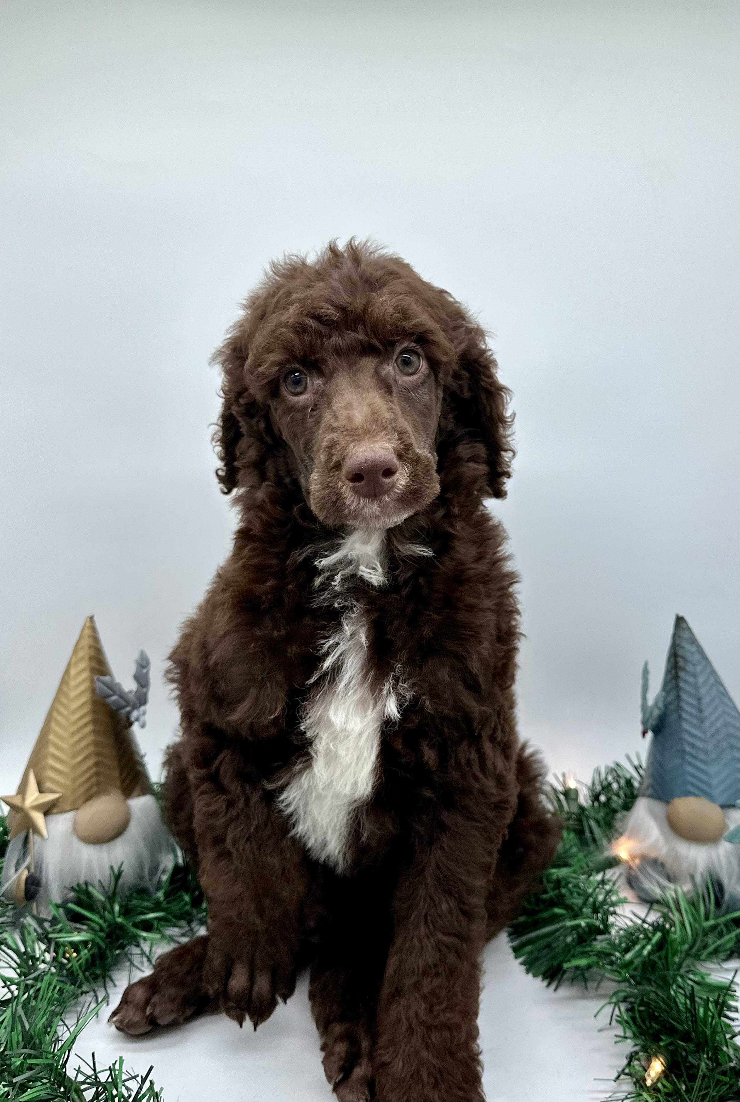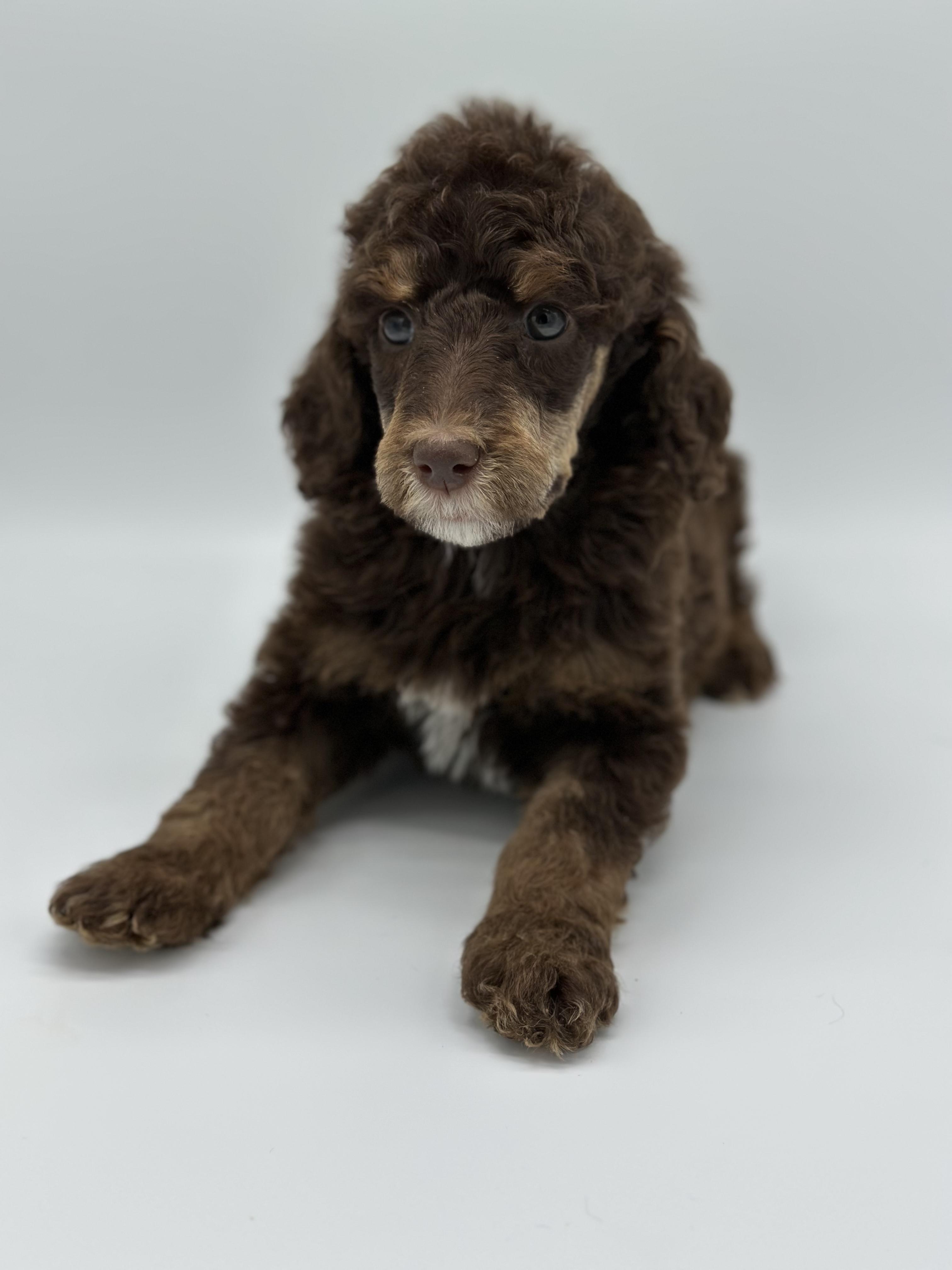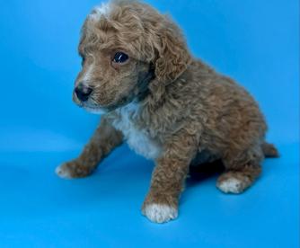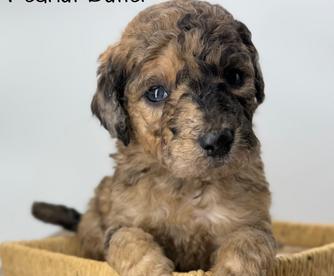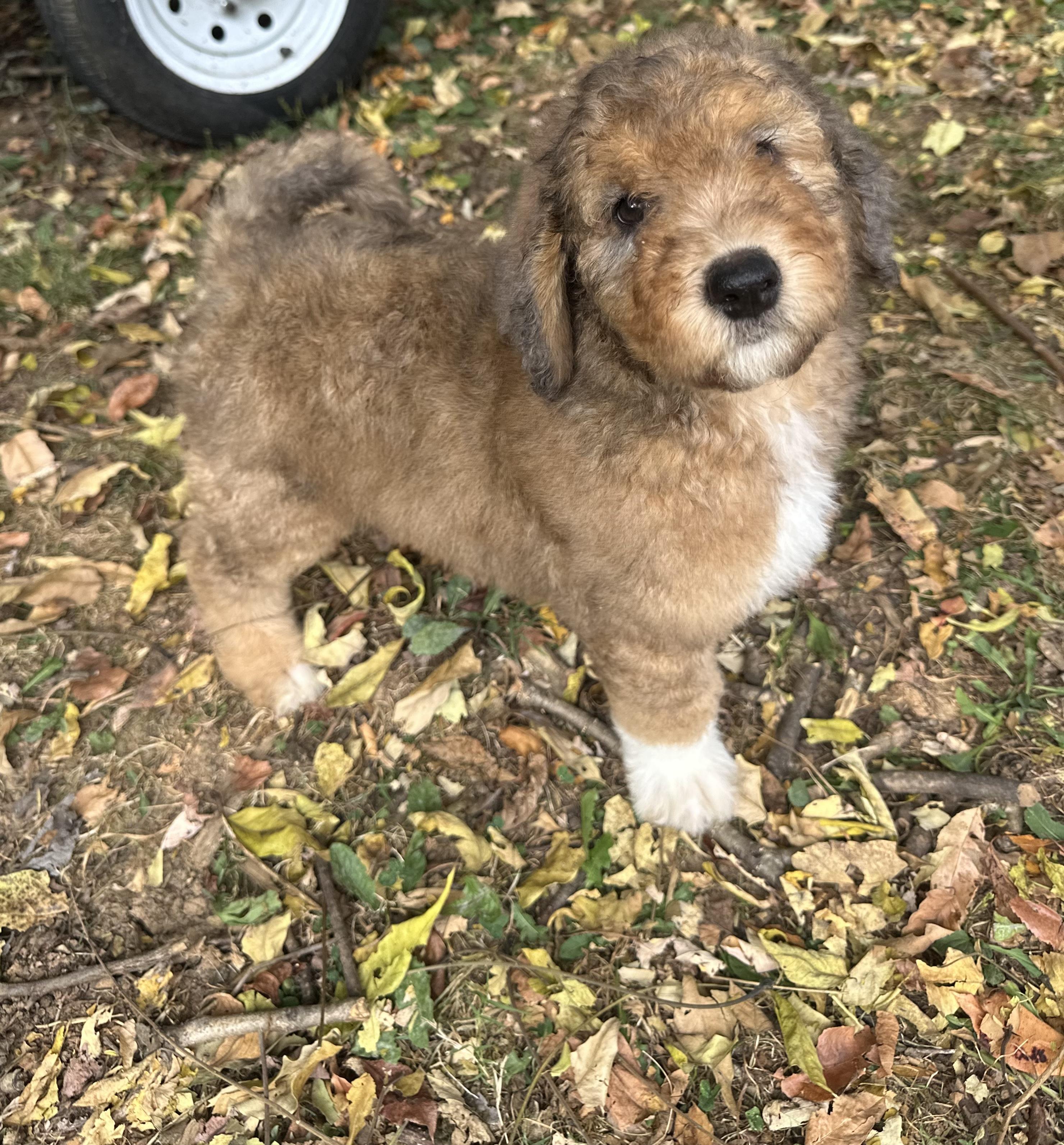 Our Poodle puppies include sable, apricot, black, brown, cream, parti, and phantom. Sheepadoodle puppies include merle, white, blue merle, blue gray and white, black and white, and black. Colors will vary depending on the parent dogs.