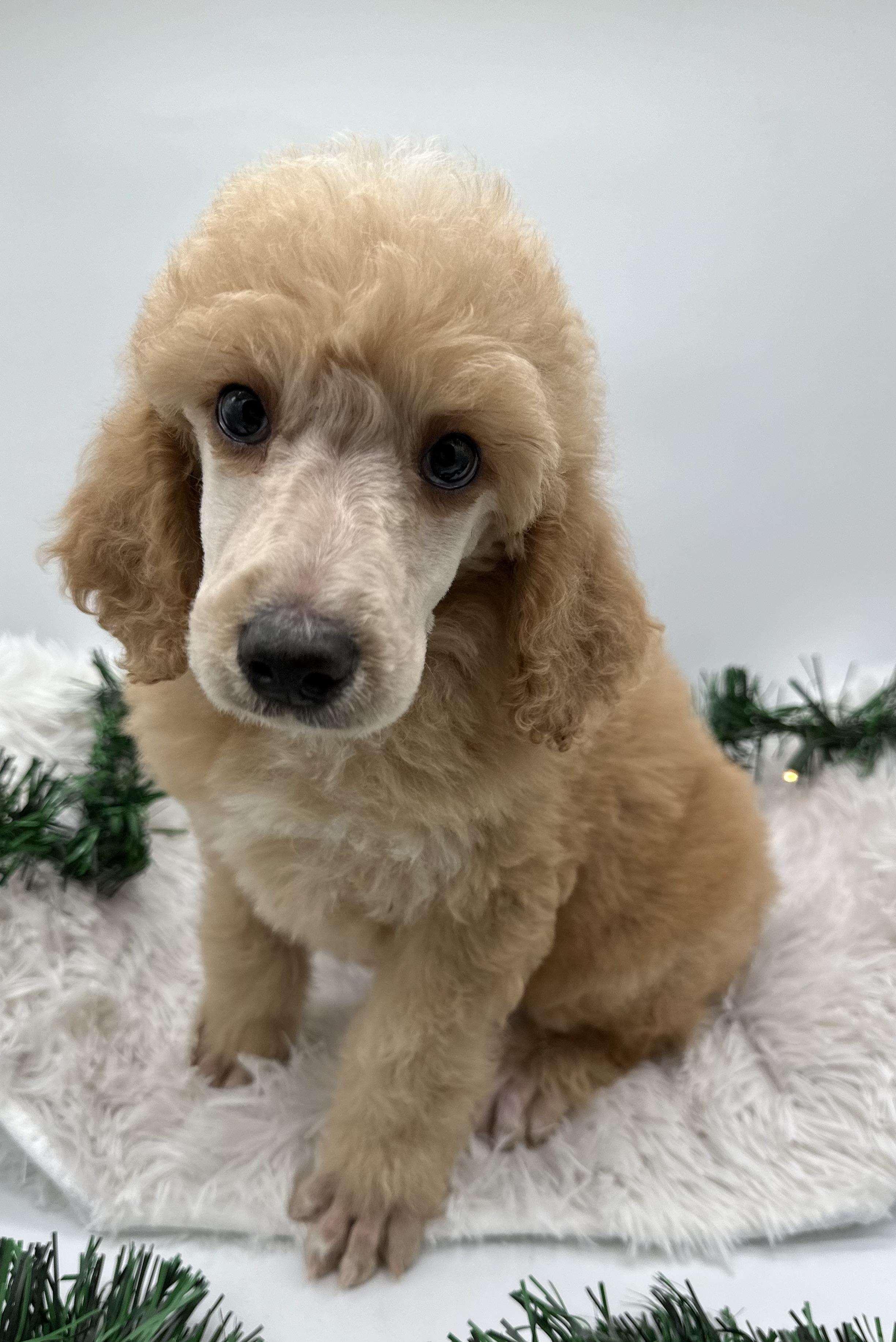 Caspian (Cas) is a spoiled little love bug! He weighs 25lbs full grown and is a small standard (moyen) poodle. He is full of life and as loyal as they come. He loves his toys and is the sweetest most snuggly boy!