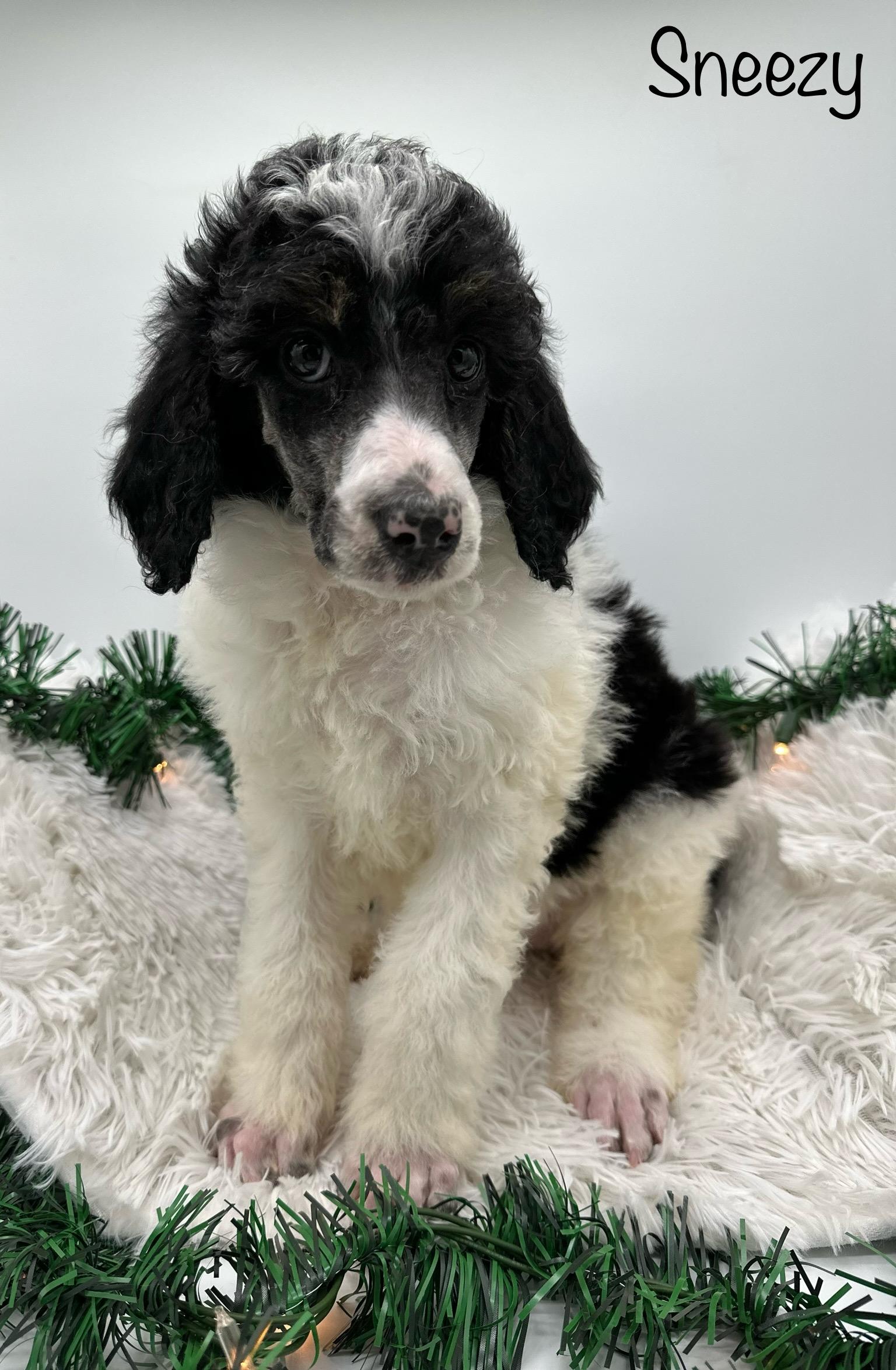 Our Poodle puppies include miniature, moyen, and standard sizes. Sheepadoodle puppies include miniature, medium, and standard sizes. Sizes will vary depending on the parent dogs.