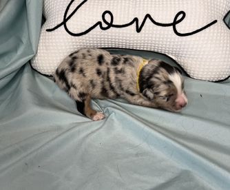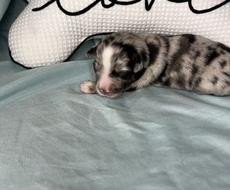 Gunner is a male Toy Australian Shepherd. Carefully selected as a great representative of his breed, Danielle decided to make him part of their program. Danielle has passed Good Dog’s screening process, which involved a review of their breeding practices, environment, and the mental and physical health of their dogs.
