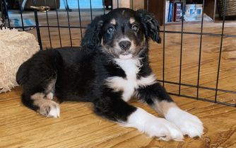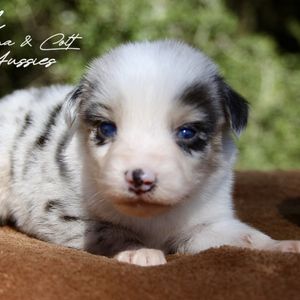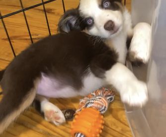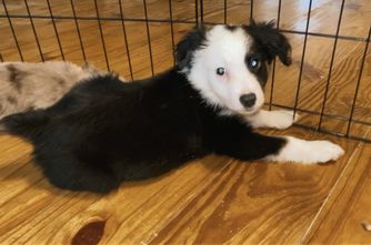 Our puppies include red & white, black & white, red merle, blue merle, black tri-color, and red tri-color. Colors will vary depending on the parent dogs.