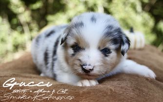I'm Katleen O., the breeder behind Smokin K Aussies located in Grapeland, TX. We are a small in-home program located in East Texas. We raise registered, genetically health & temperament tested Australian Shepherds. Our dogs are members of our family, first and foremost. We love our dogs and what we do, and we strive to make each puppy a great contribution to its forever home.