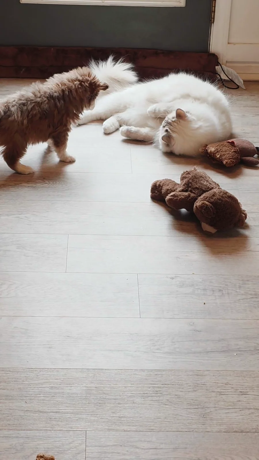 Do you have a cat? All of our puppies are socialized with our Ragdoll cat, Dusty! He is our Chief of Puppy Socialization and takes his job very seriously!