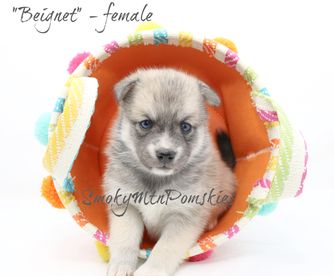 I cannot adequately express how wonderful Jennifer and her whole program at Smoky Mountain Pomskies truly is. Jennifer is incredibly knowledgeable about the breed! I did extensive research before deciding on a pomsky but I still had a few questions that Jennifer was able to provide definitive answers for. I really appreciated that she provided temperament tests for the whole litter, as this is an excellent way to determine the puppy's compatibility with your household and your lifestyle. Additionally, Jennifer went WAY above and beyond with the puppy kit she sent us home with, and even provided further guidance and insight after I brought my little one home.