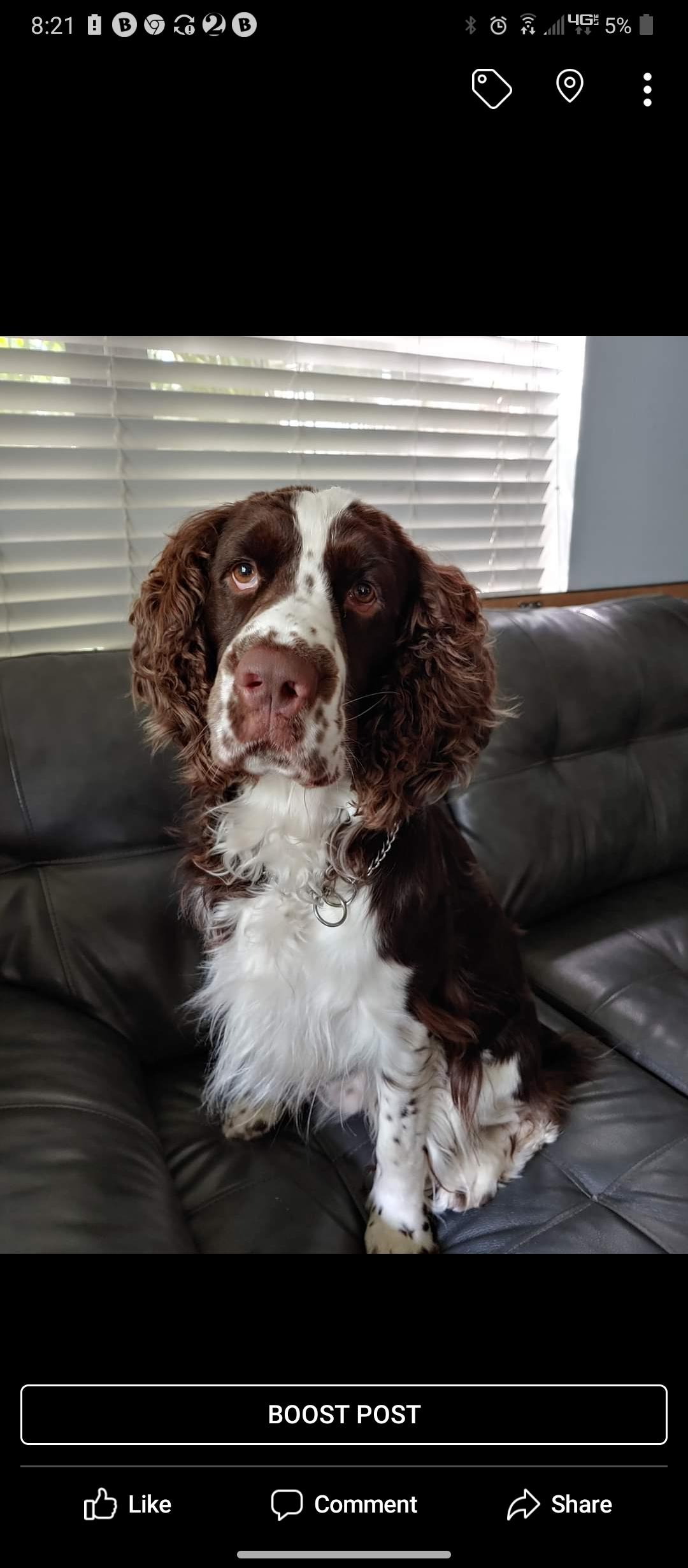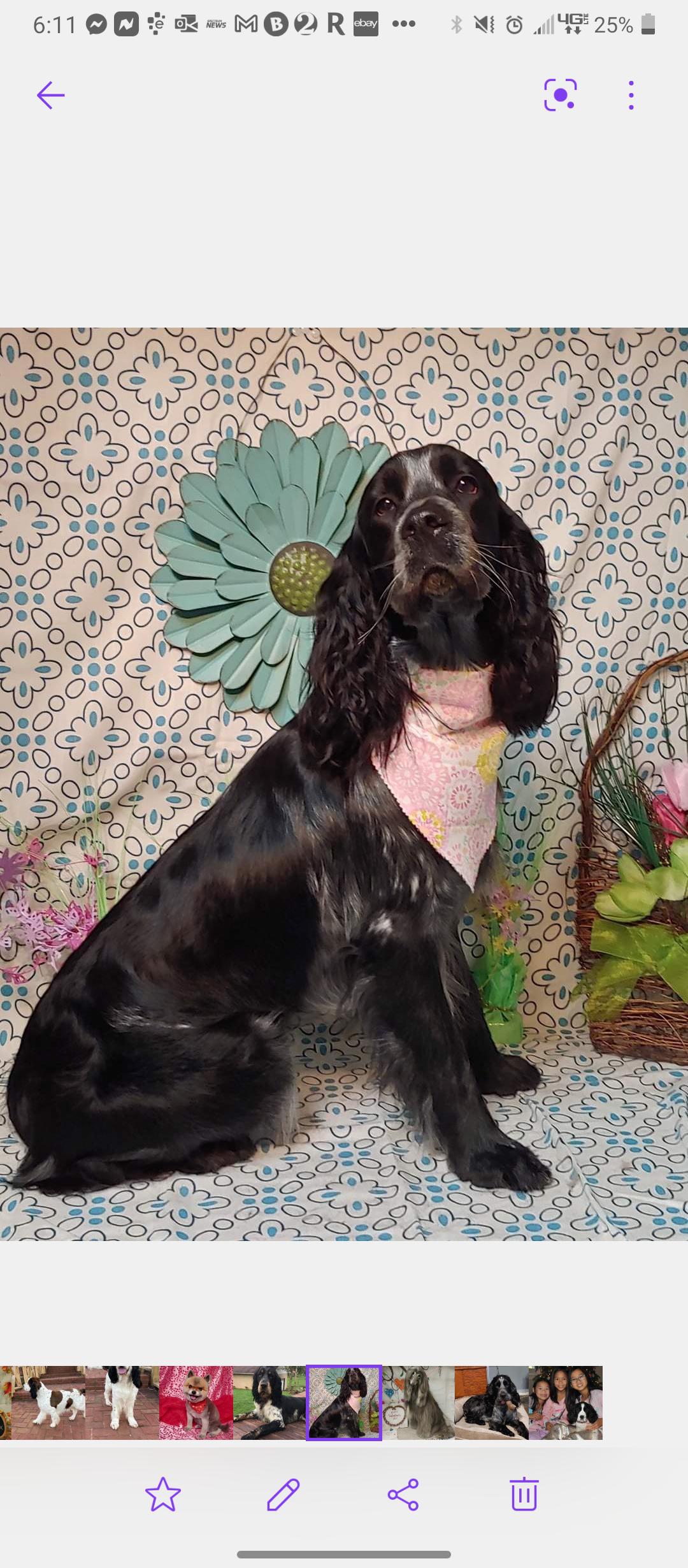 Nyx is a female English Springer Spaniel almost 8 years old. Carefully selected as a great representative of her breed, Dallas decided to make her part of their program. Dallas has passed Good Dog’s screening process, which involved a review of their breeding practices, environment, and the mental and physical health of their dogs.