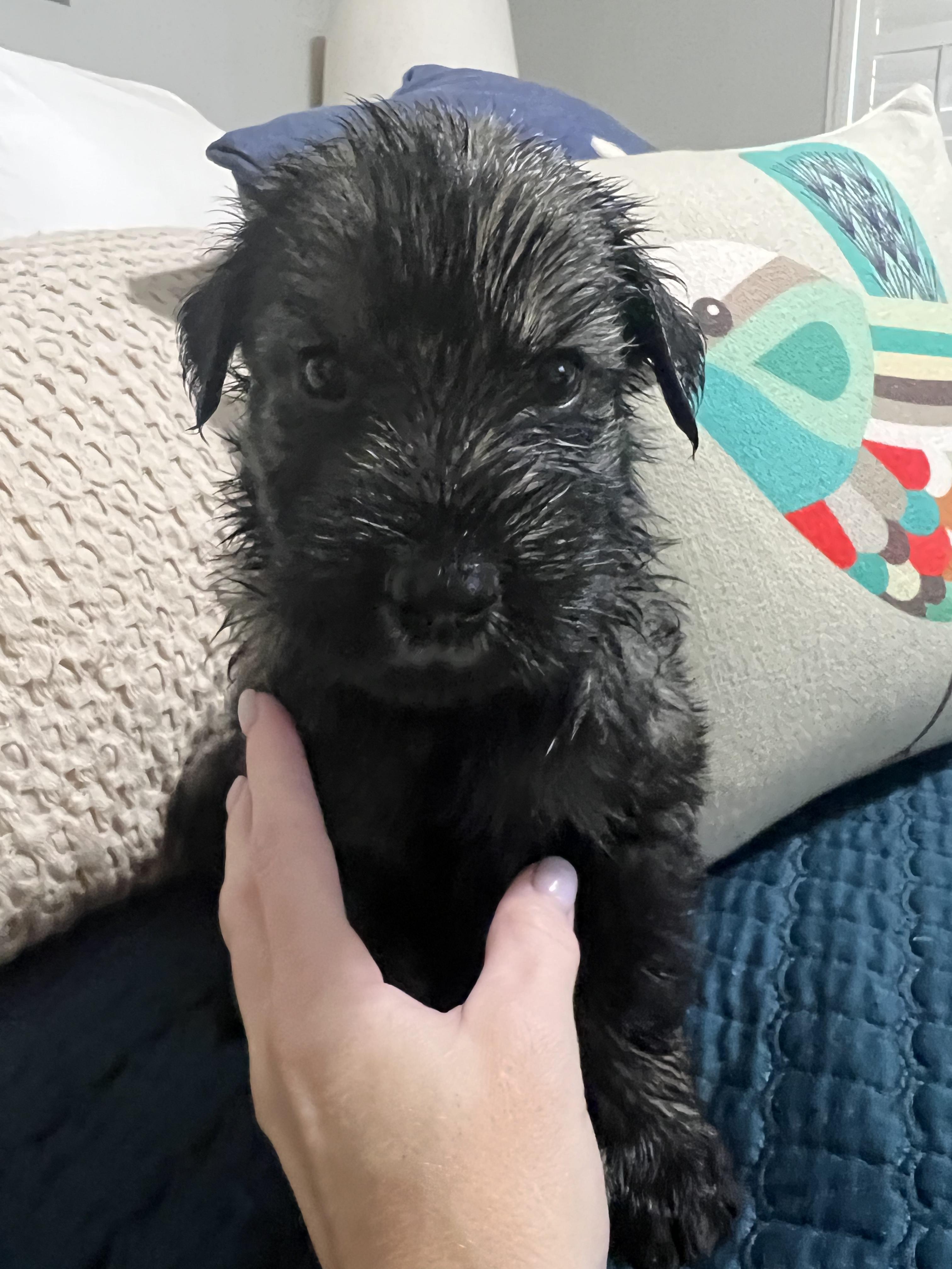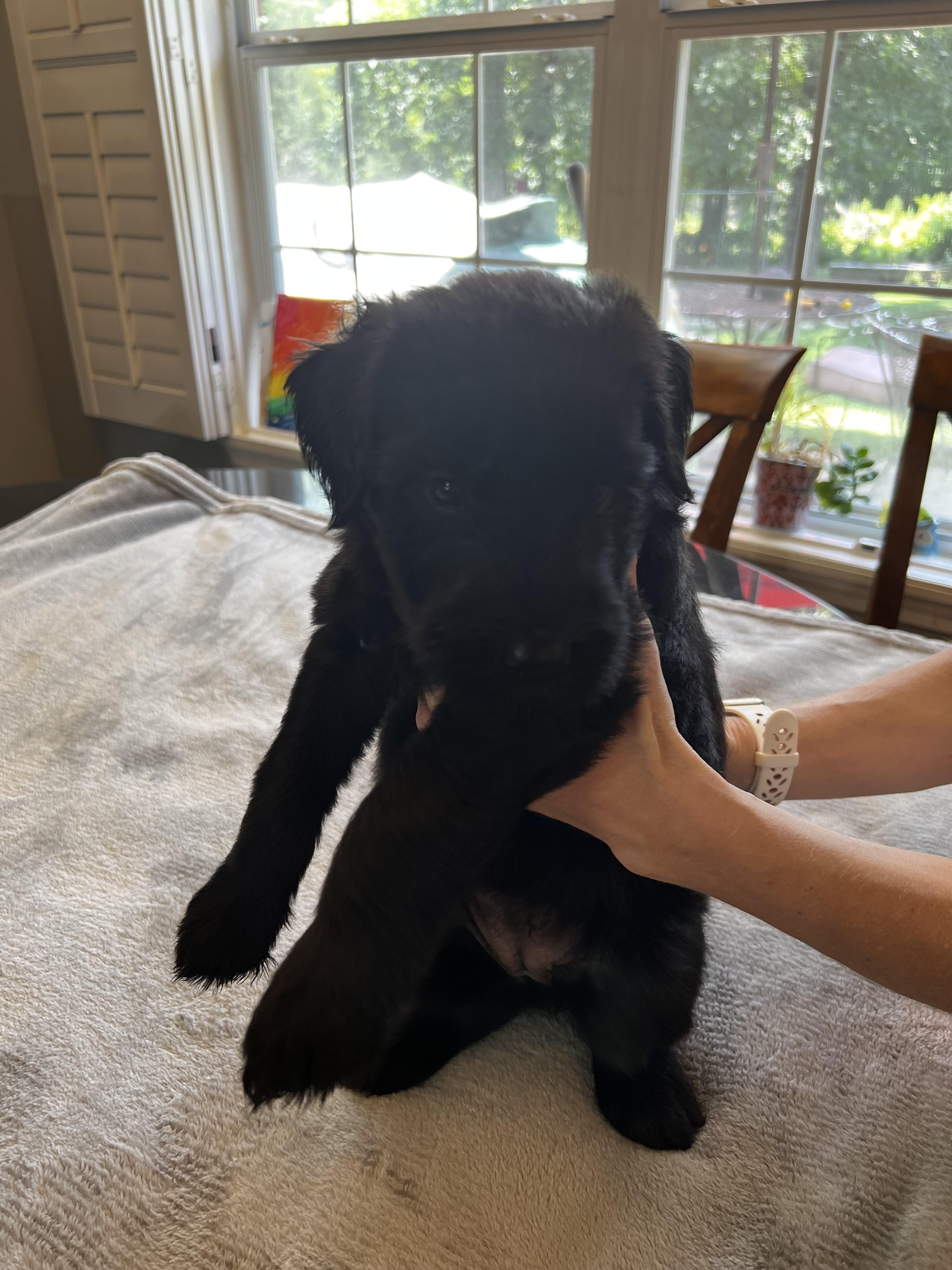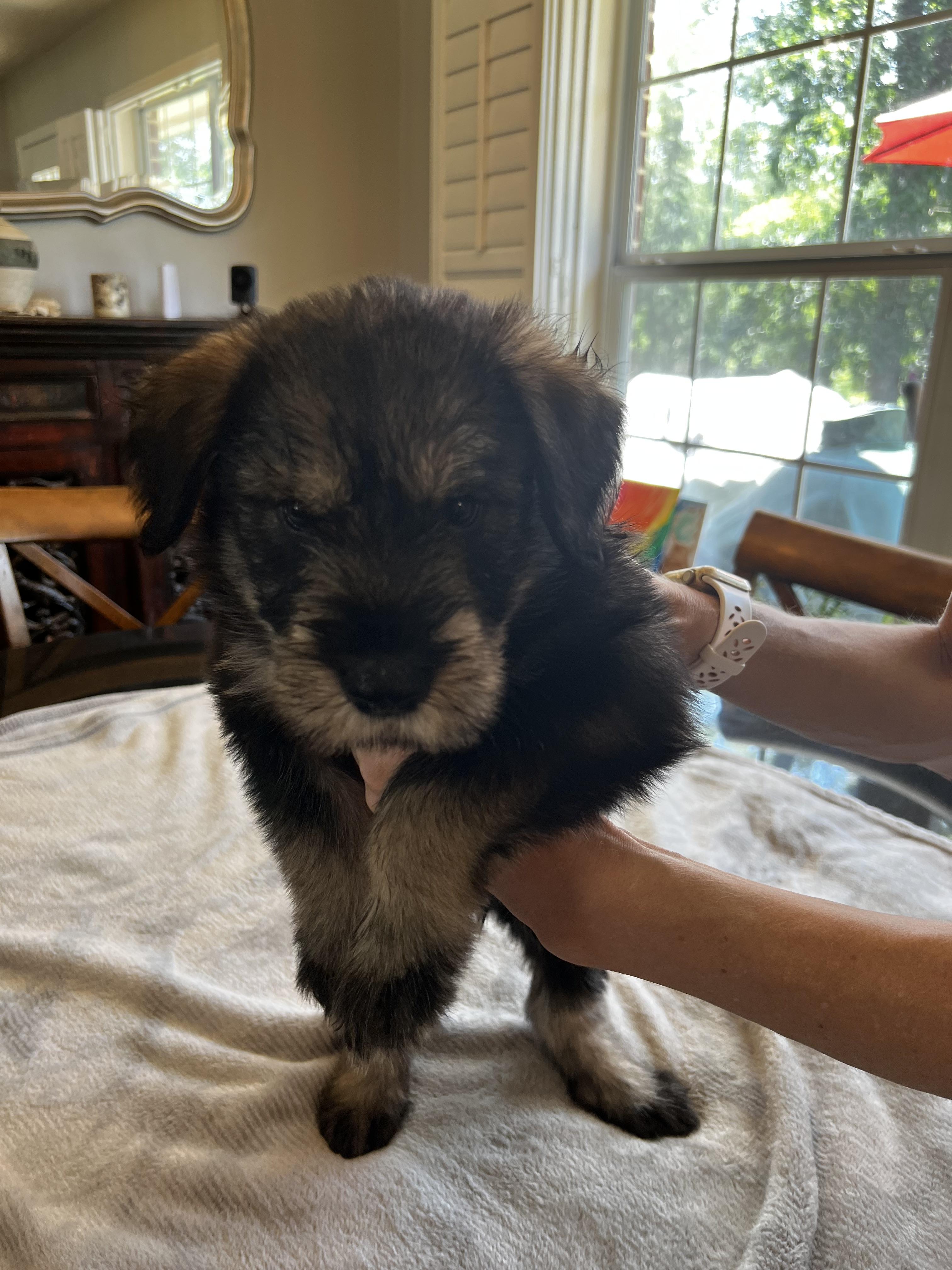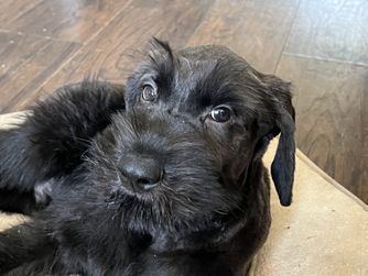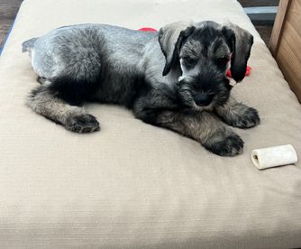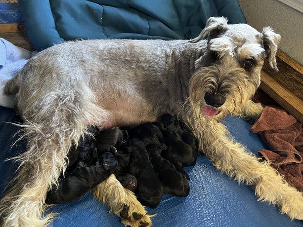 Our puppies include black and pepper and salt. Colors will vary depending on the parent dogs.