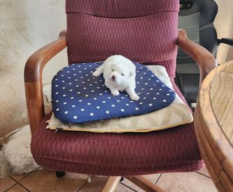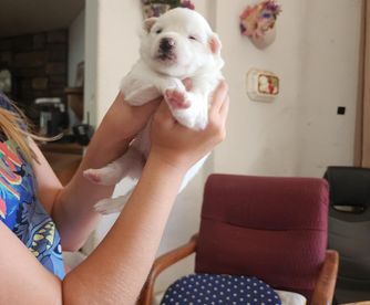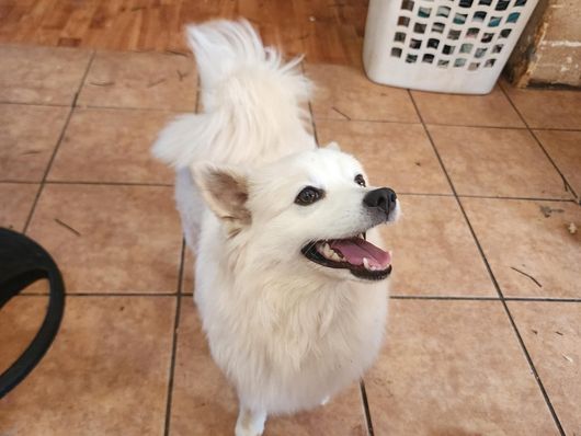 Thea is a female American Eskimo Dog. Carefully selected as a great representative of her breed, Helen decided to make her part of their program. Helen has passed Good Dog’s screening process, which involved a review of their breeding practices, environment, and the mental and physical health of their dogs.