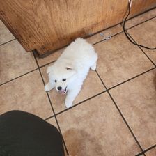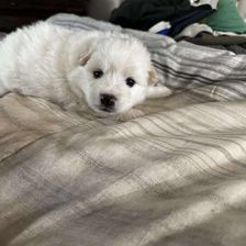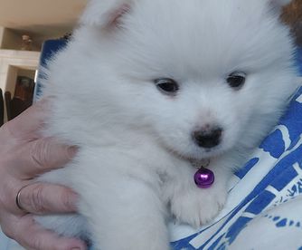 Aurora Jane is a female American Eskimo Dog. Carefully selected as a great representative of her breed, Helen decided to make her part of their program. Helen has passed Good Dog’s screening process, which involved a review of their breeding practices, environment, and the mental and physical health of their dogs.