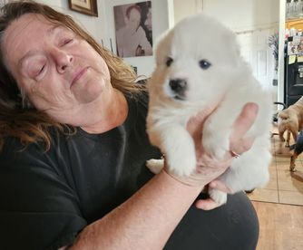 I'm Helen K., the breeder behind SnH Eskies located in Grants Pass, OR. We’re proud of the healthy, affectionate, and behaviorally well-rounded puppies we raise for other families to love! We breed with passion and integrity so we’re able to responsibly contribute to growing this amazing breed. It’s important to us to share the gift of living with one of our puppies with other families.