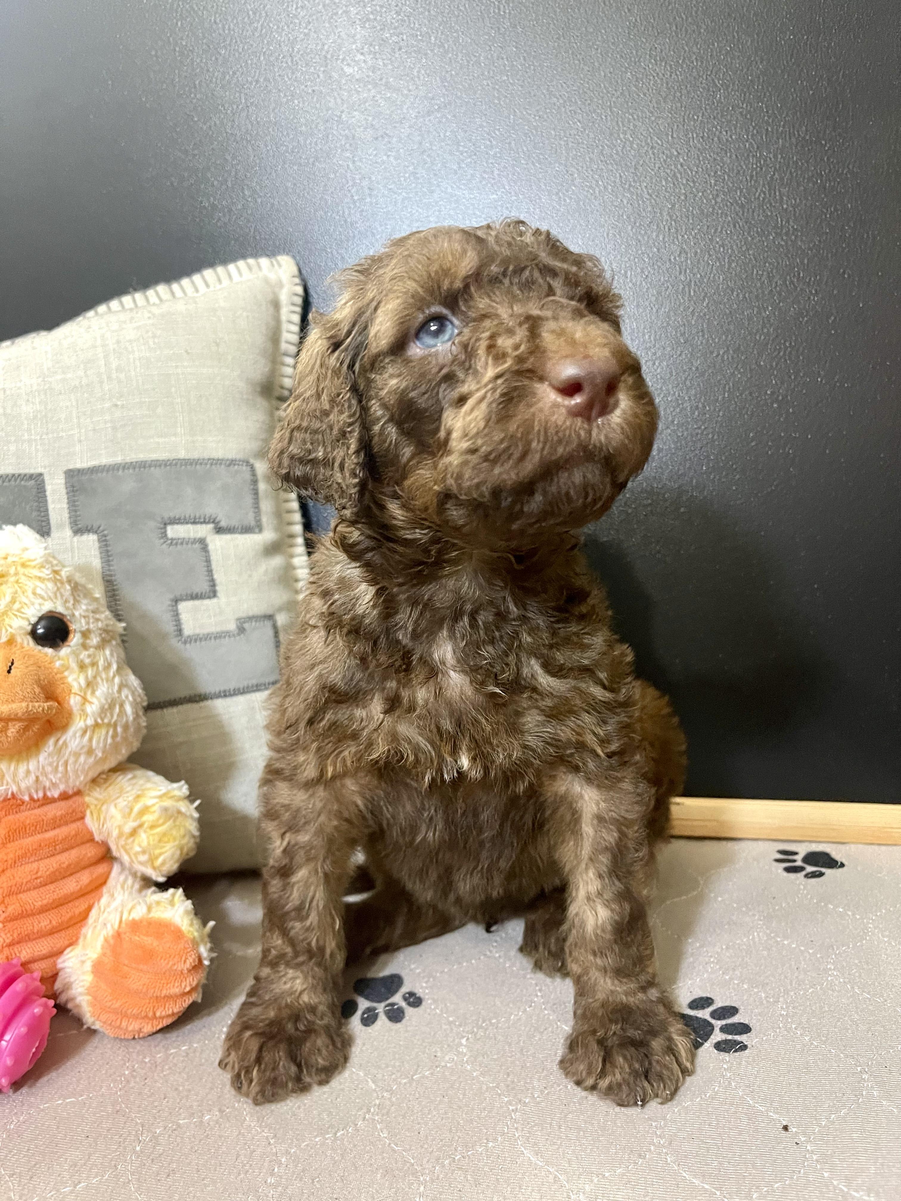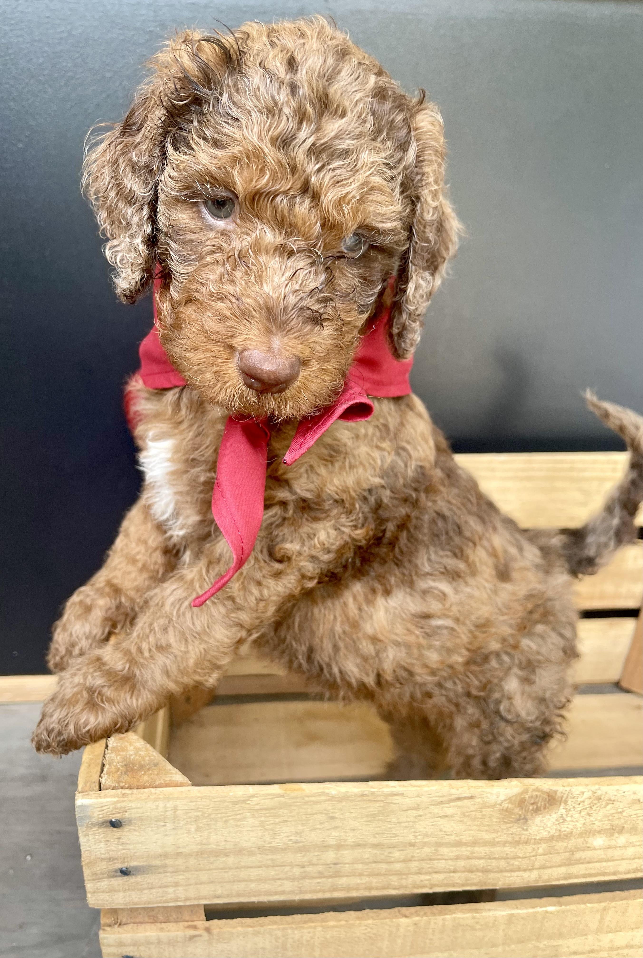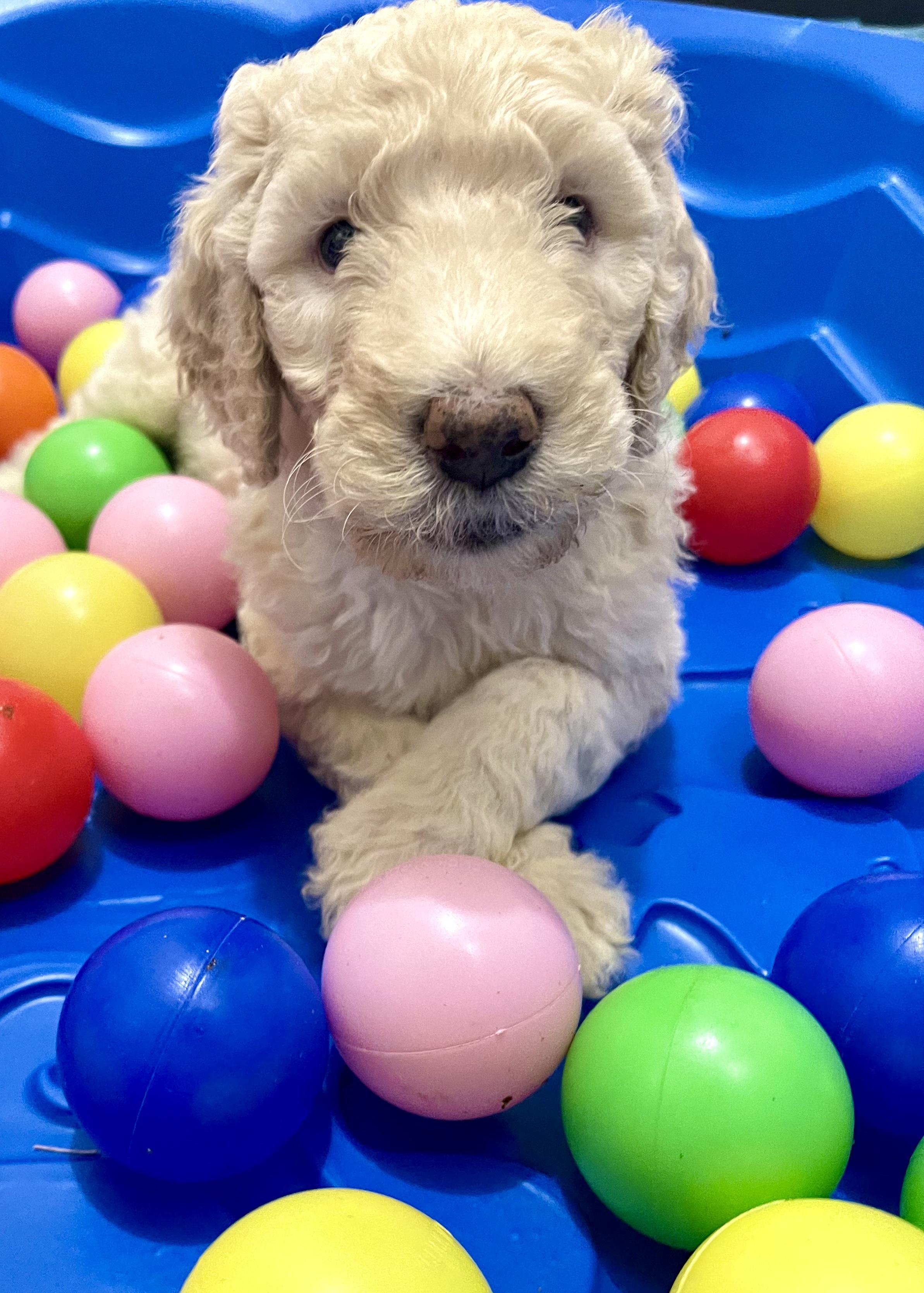 Our Goldendoodle puppies include cream, apricot, red, chocolate, black, phantom, merle, and parti. Poodle puppies include apricot, black, brown, cream, parti, and phantom. Colors will vary depending on the parent dogs.