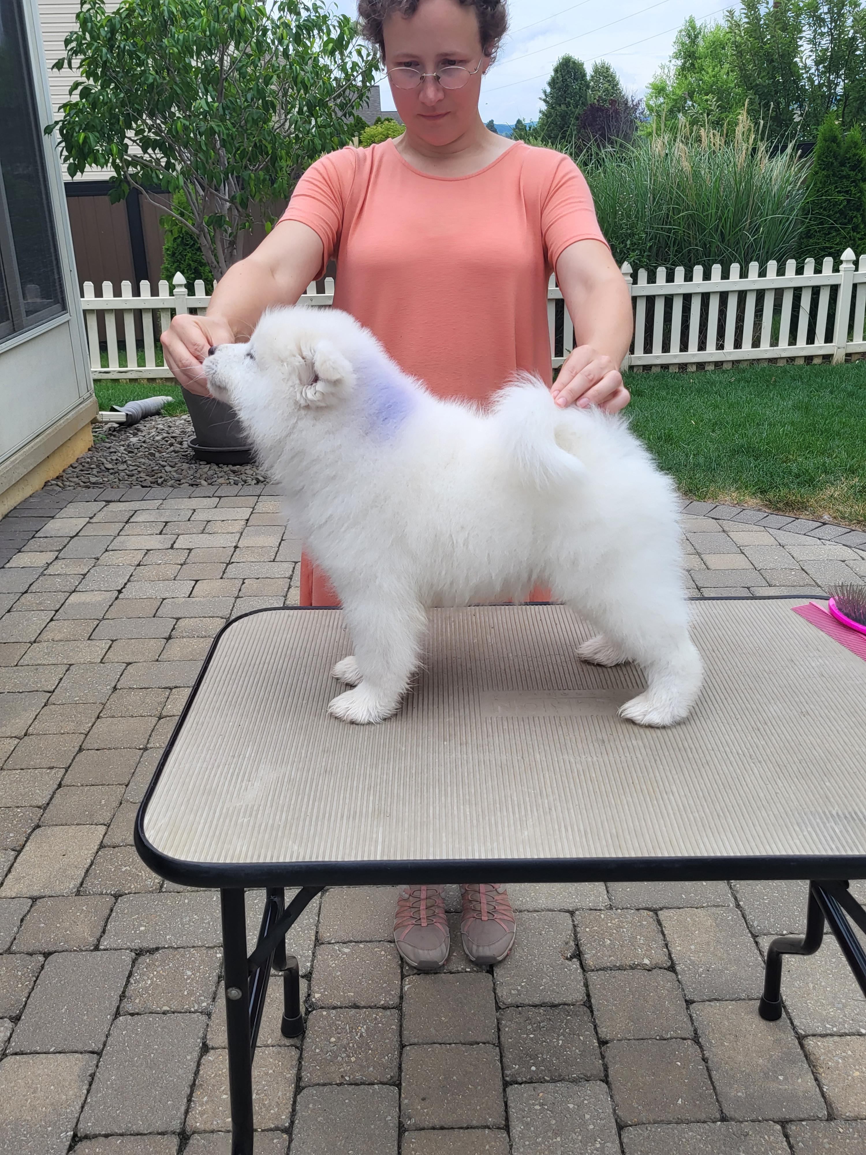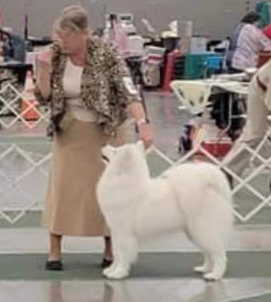 Beautiful bitch who pedigree is all champions or Grand Champions for many generations. She is not only beautiful she is very intelligent. I owned her Grandmother who was my foundation butch. Her mother was raised by my friend. She did amazing in the show ring. All health testing is been done on all my dogs prior to breeding. I don't just test hips and eyes which is the least testing you can do. I do all testing available for samoyeds.