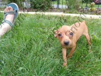 Our Miniature Pinscher puppies include chocolate and rust, stag red, red, black and tan, and black and rust. Pembroke Welsh Corgi puppies include fawn, red, sable, white and red, and black and tan. Colors will vary depending on the parent dogs.
