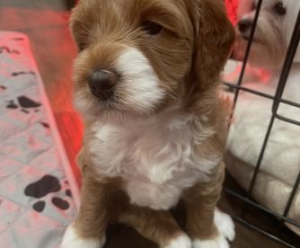 Our puppies include caramel red, red, and apricot. Colors will vary depending on the parent dogs.