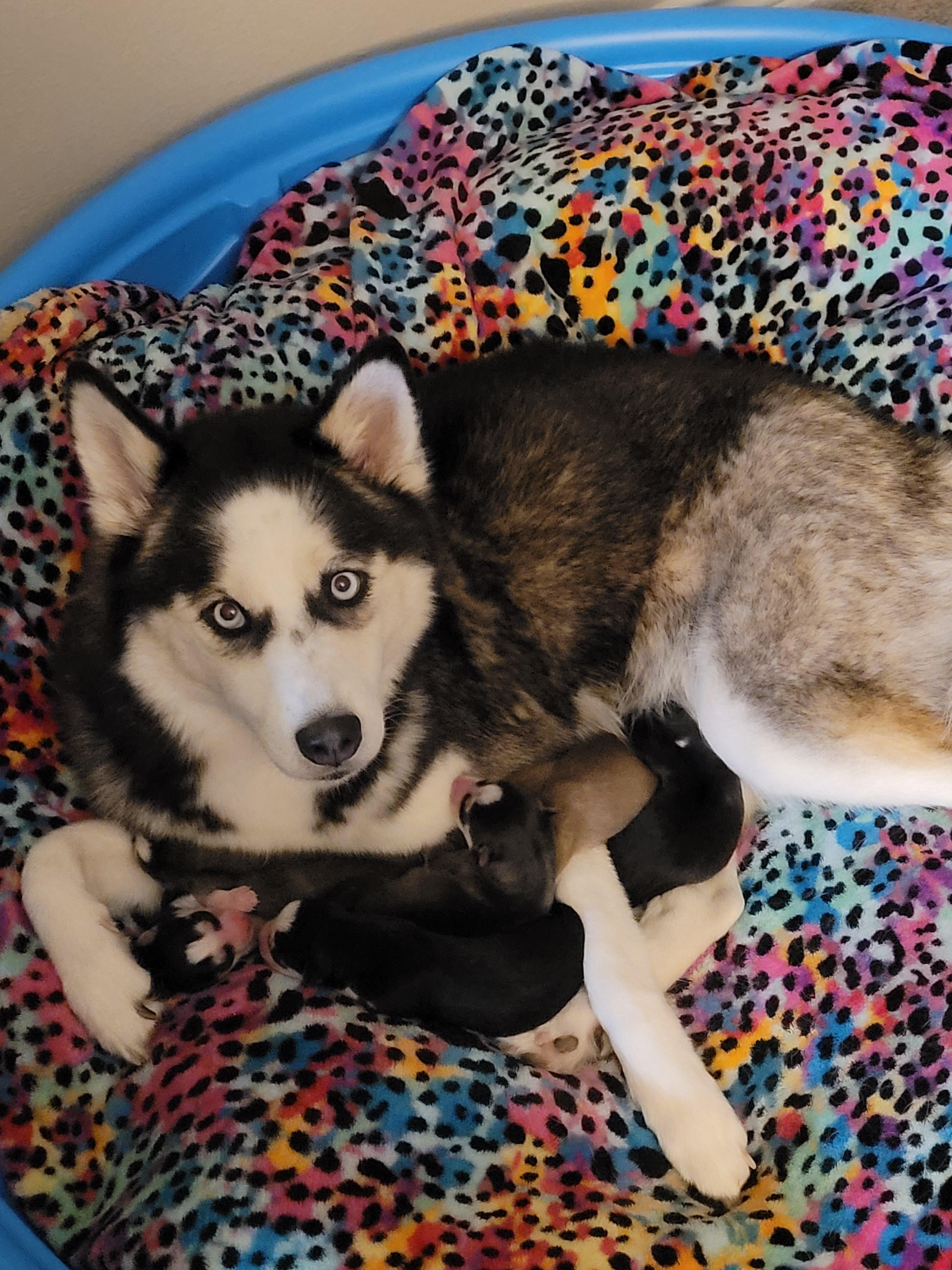 Gunner is a male Siberian Husky. Carefully selected as a great representative of his breed, Bridgette decided to make him part of their program. Bridgette has passed Good Dog’s screening process, which involved a review of their breeding practices, environment, and the mental and physical health of their dogs.