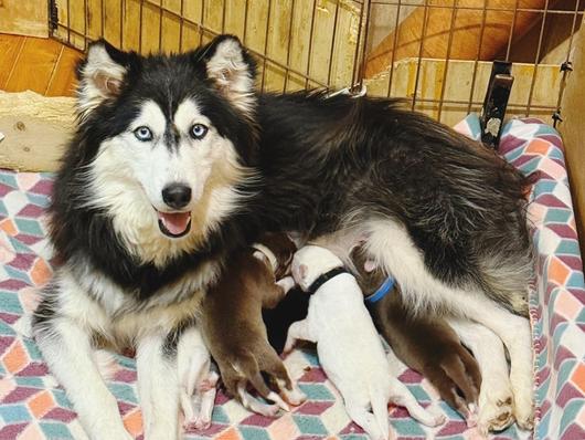 I'm Elaine L., the breeder behind SNOW WOOLY HUSKY located in Lunenburg, VT. We raise our litters in our home to help set the foundation for happy and confident puppies to transition well into their forever homes. It’s a privilege to have the opportunity to make an impact on each individual puppy!