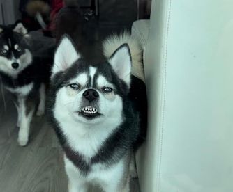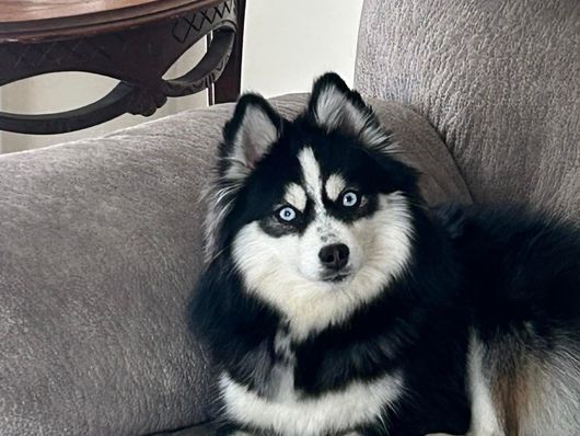 Triton loves people. He is a beautiful woolly pomsky with pretty blue eyes.
