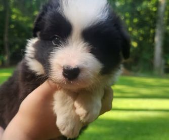 Our puppies include black and white and blue merle. Colors will vary depending on the parent dogs.