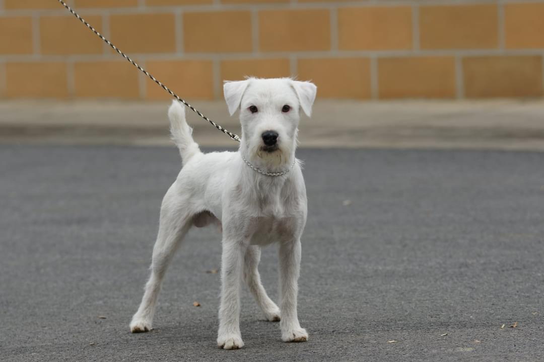 Tonic is a beautifully structured terrier with many conformation championships to his name. He has a wonderful dense coat, a lovely temperament, and standard 12.5" at the shoulder.