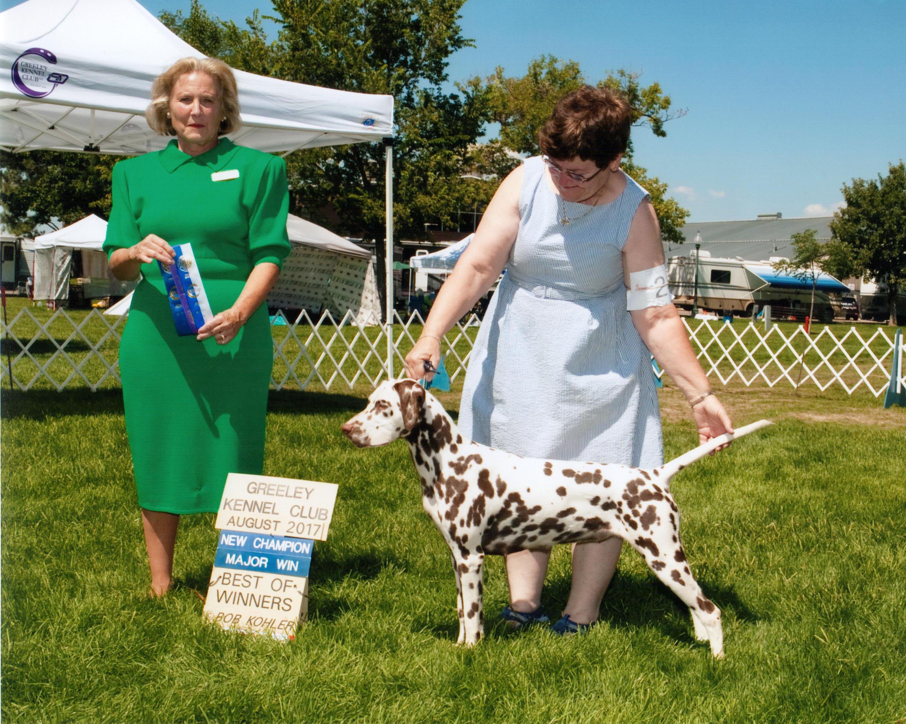 My first Dalmatian was a "drop off", someone dumped her in the country by our farm. When she was older I talked my husband into getting a show dog since showing dogs couldn't be any harder than showing horses. That was in 1982 and I've been hooked ever since