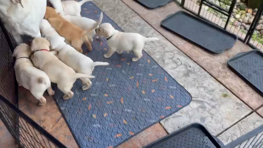 The puppies are officially 6 weeks old and doing great. Everyone is happy, healthy, and growing well. With the weather at a perfect 62 degrees, they spent a few hours outside exploring, playing, and soaking up some fresh air. They’re getting more confident each day, interacting well with each other, and showing lots of sweet, curious personalities. More photos and videos coming soon as they continue to grow and change.