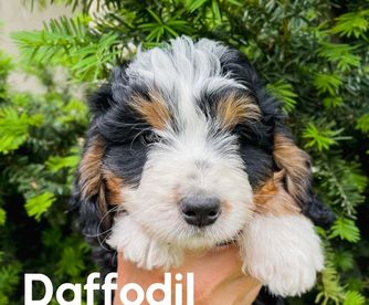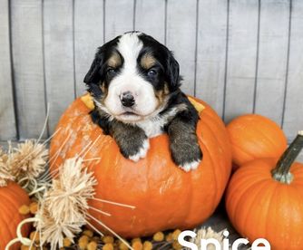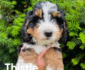Our Bernedoodle puppies are tri-color. Bernese Mountain Dog puppies are tri-color. Colors will vary depending on the parent dogs.