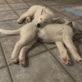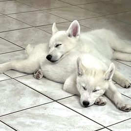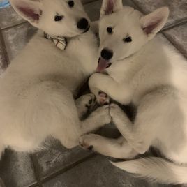 We had a really good experience with Virlana! From the time we first contacted her for info to travel day, she kept us up to date with pics of our babies daily. The boys arrived via transport, safe and sound and were instantly happy to see us, no apprehension at all. They are very well socialized and I’m extremely glad I opted for two. Aspen and Sequoia adore each other and us and we are absolutely in love with them! I highly recommend Virlana with Snowy Siberians ❤️
