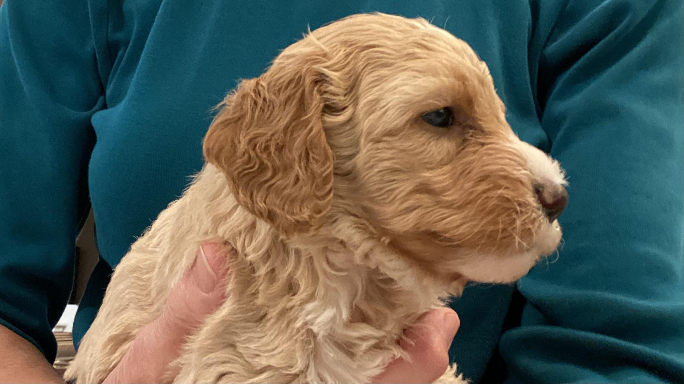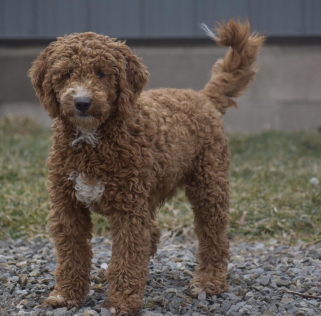 Our Goldendoodle puppies include cream, apricot, and red. Colors will vary depending on the parent dogs.
