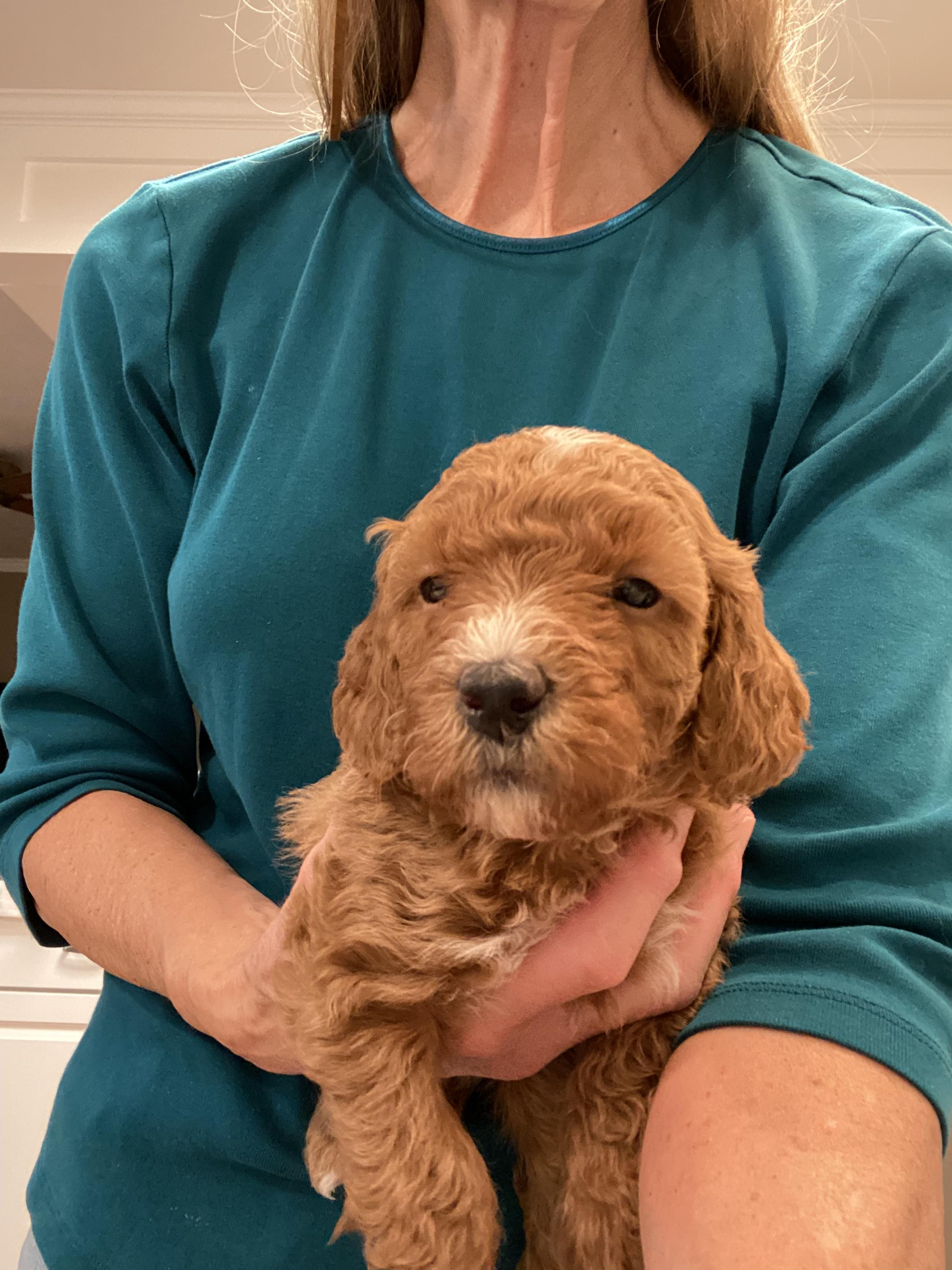 Nolan is a male Goldendoodle. Carefully selected as a great representative of his breed, Diane decided to make him part of their program. Diane has passed Good Dog’s screening process, which involved a review of their breeding practices, environment, and the mental and physical health of their dogs.
