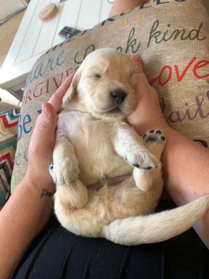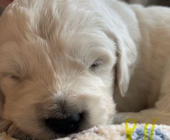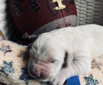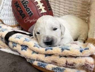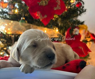 Tracy from Snyder's Loyal Goldens was very responsive from the beginning! We got matched really quickly and even got to meet our puppy Samson in advance, when he was just a few weeks old. We got him right at 8 weeks and he's a joy! He's growing about 3 lbs a week and is probably going to be as big as his daddy at around 80 lbs. Just look at those paws! Tracy is really easy to work with and we would definitely get another puppy from her in the future if we decide on another golden.