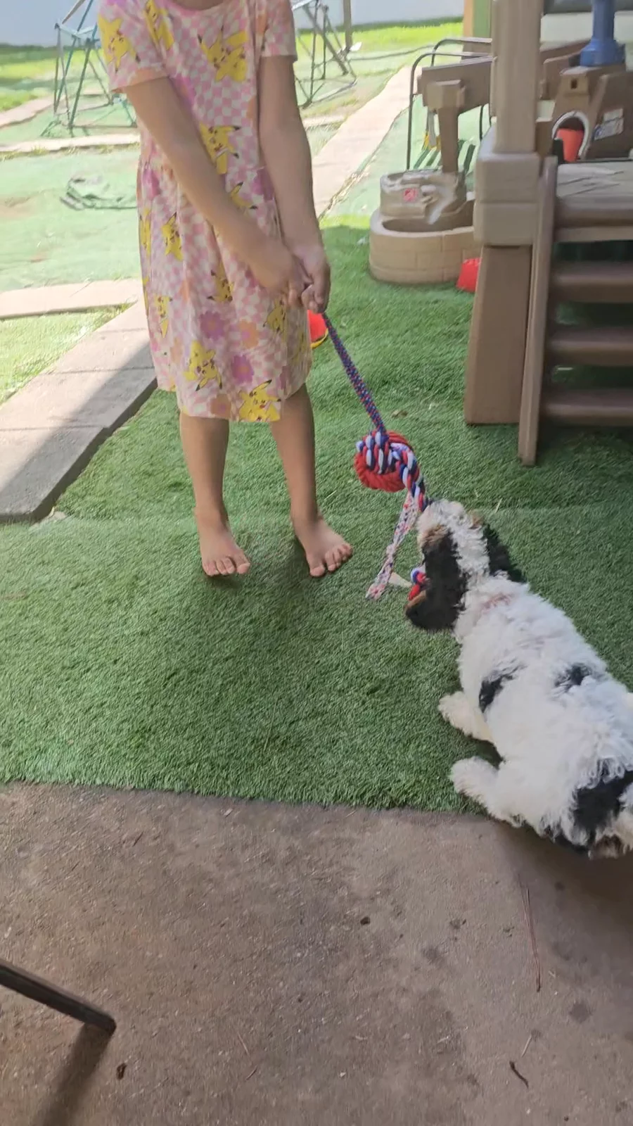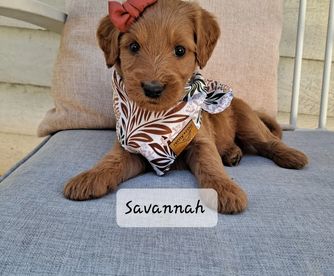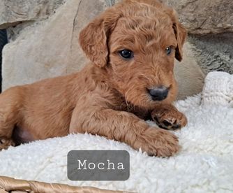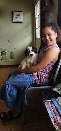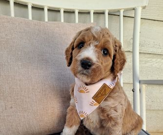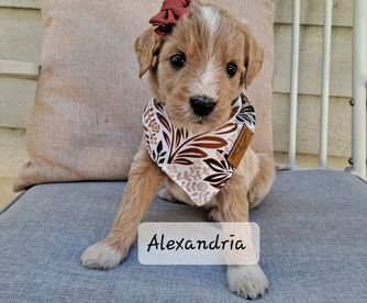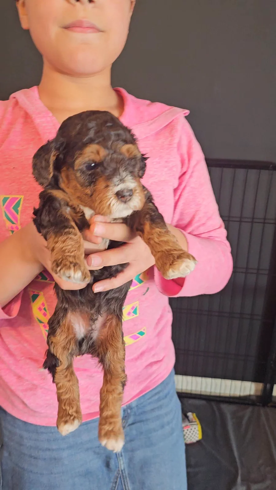 Maebelle is perhaps the sweetest doodle girl you will ever meet with a remarkable tri color coat that is sure to turn heads!
