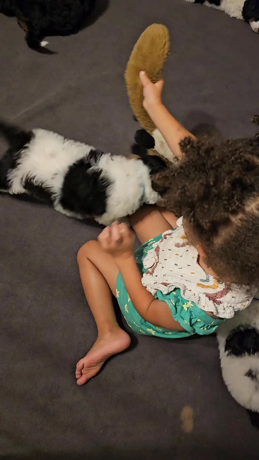 Playtime before bed! Savannah has really taken an interest in human play over littermate play this evening ❤️! Love all these babies so much ❤️!