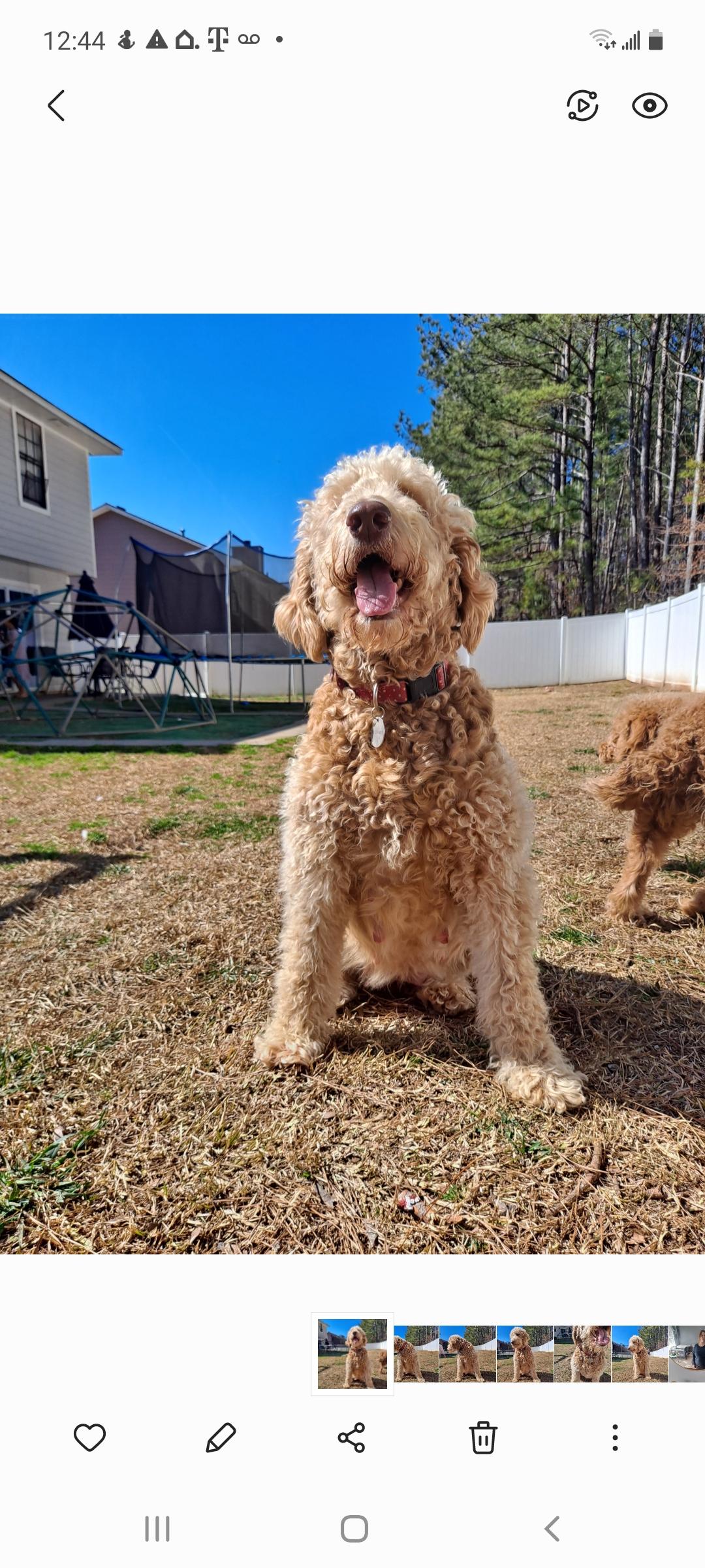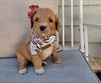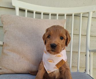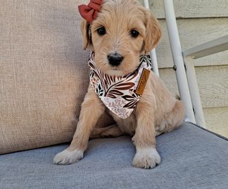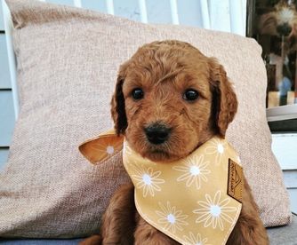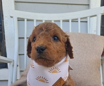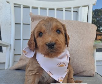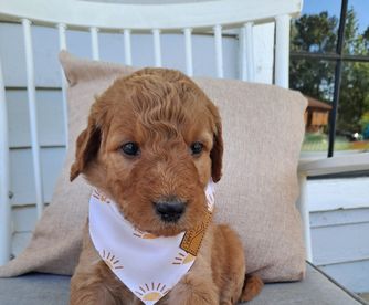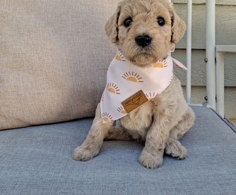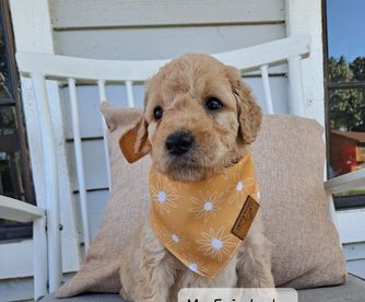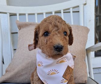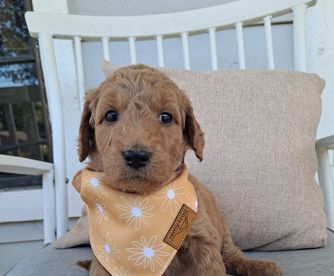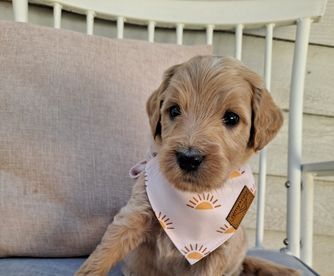 Muffin is a male Goldendoodle about 4 years old. Carefully selected as a great representative of his breed, Kelly decided to make him part of their program. Kelly has passed Good Dog’s screening process, which involved a review of their breeding practices, environment, and the mental and physical health of their dogs.